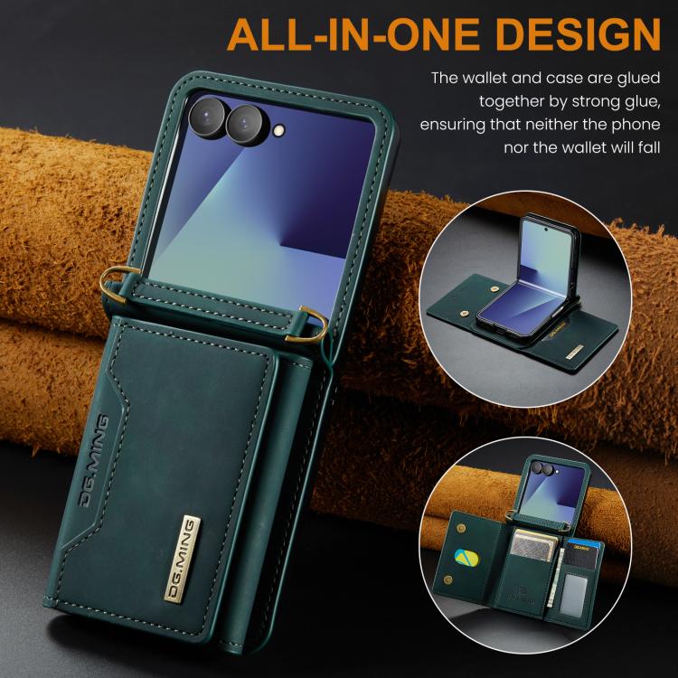 For Samsung Galaxy Z Flip7 5G DG.MING M2 Series 3-Fold Multi Card Bag hybrid Magnetic Phone Case with Long Lanyard(Green)