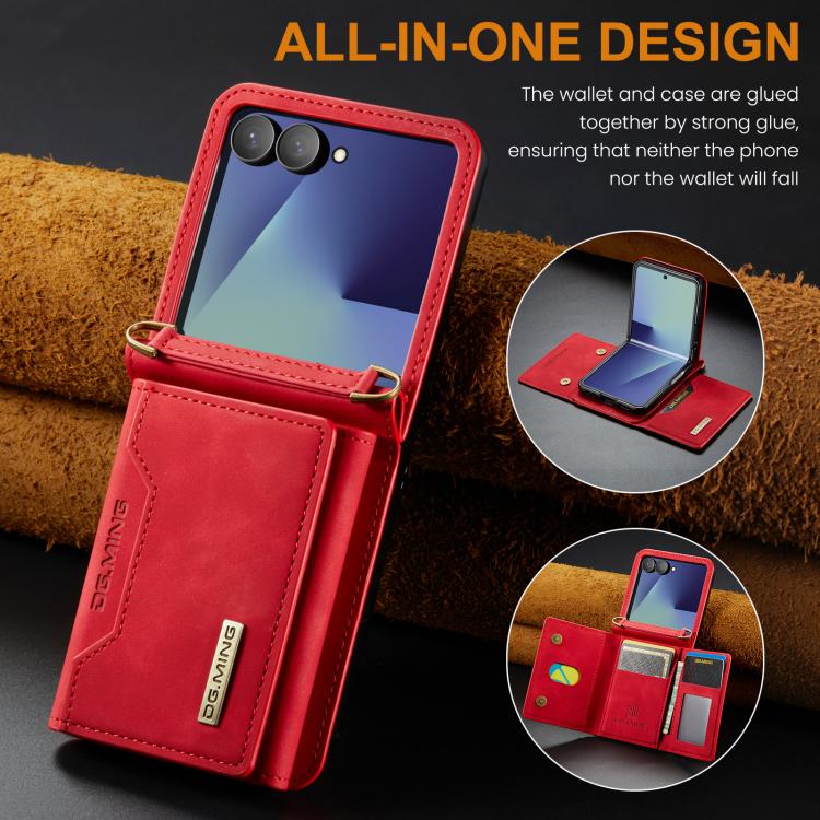 For Samsung Galaxy Z Flip7 5G DG.MING M2 Series 3-Fold Multi Card Bag hybrid Magnetic Phone Case with Long Lanyard(Red)