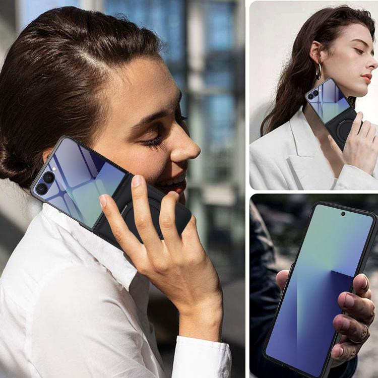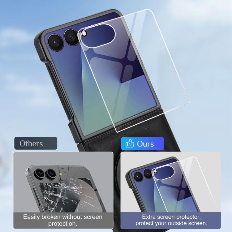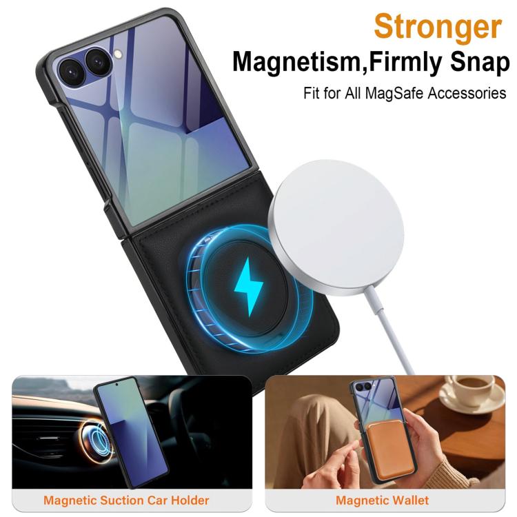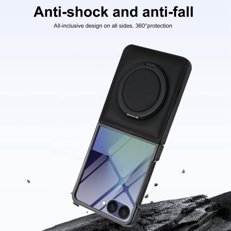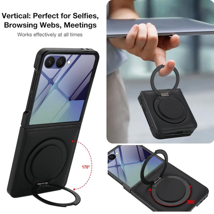 For Samsung Galaxy Z Flip7 5G Folding Rotation Holder MagSafe Film Integrated Leather Phone Case(Black)