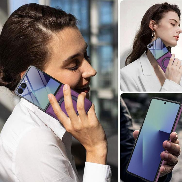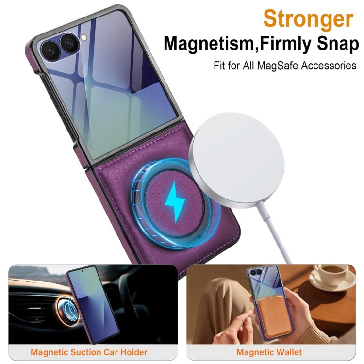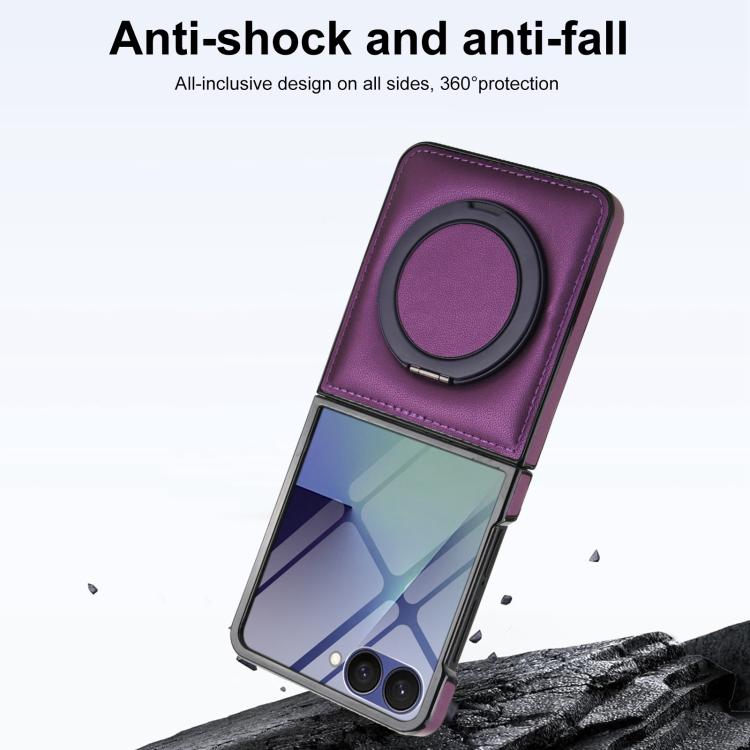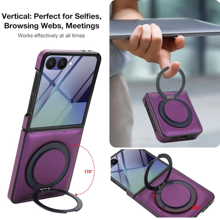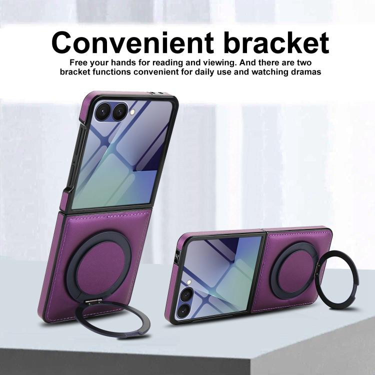 For Samsung Galaxy Z Flip7 5G Folding Rotation Holder MagSafe Film Integrated Leather Phone Case(Dark Purple)