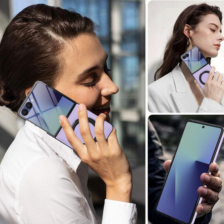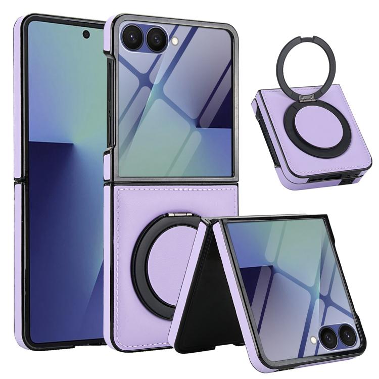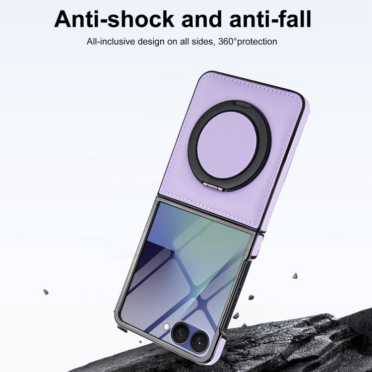 For Samsung Galaxy Z Flip7 5G Folding Rotation Holder MagSafe Film Integrated Leather Phone Case(Light Purple)