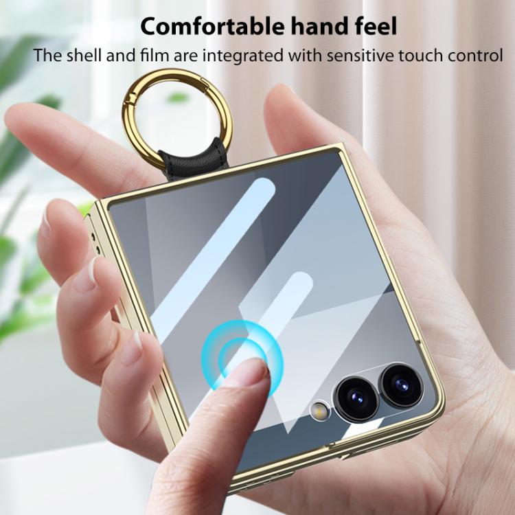 For Samsung Galaxy Z Flip7 5G GKK Integrated Plating Diamond Texture PU Phone Case with Ring(Pink)