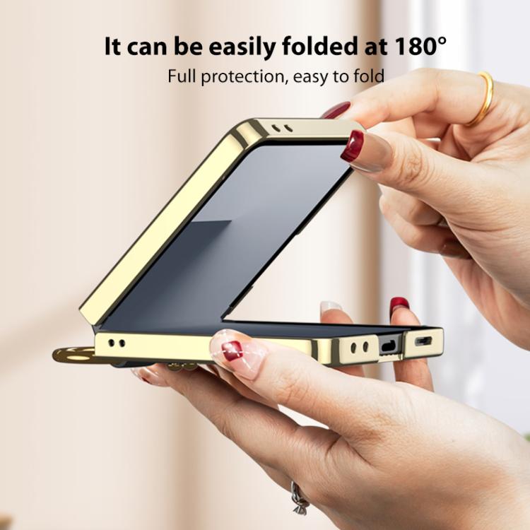 For Samsung Galaxy Z Flip7 5G GKK Integrated Plating Diamond Texture PU Phone Case with Ring(Red)