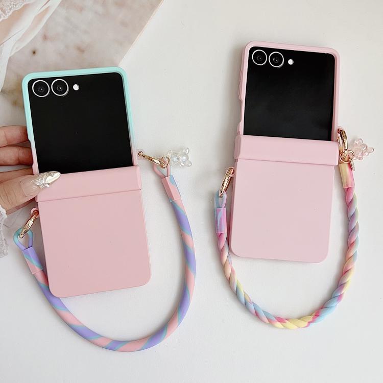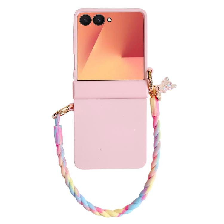 For Samsung Galaxy Z Flip7 5G Integrated Hinge Side Buckle Skin Feel PC Phone Case with Strap(Pink)
