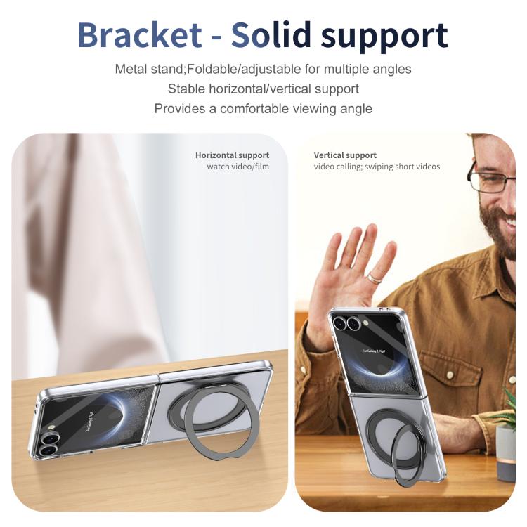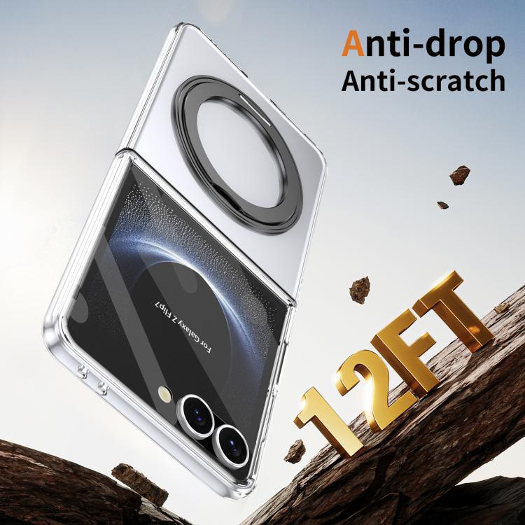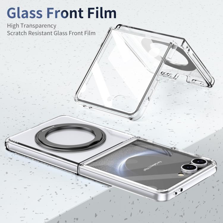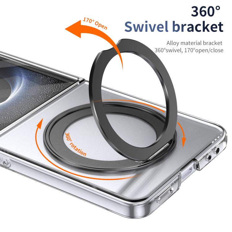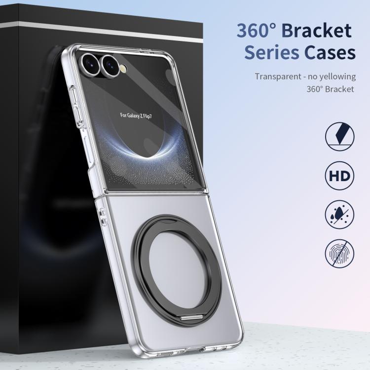 For Samsung Galaxy Z Flip7 5G Integrated Ice-feel High-transparency 360-Degree Rotating Stand MagSafe Folding Phone Case(Black)