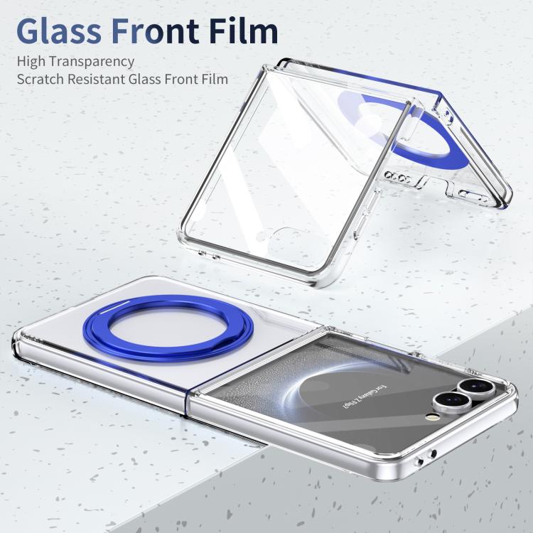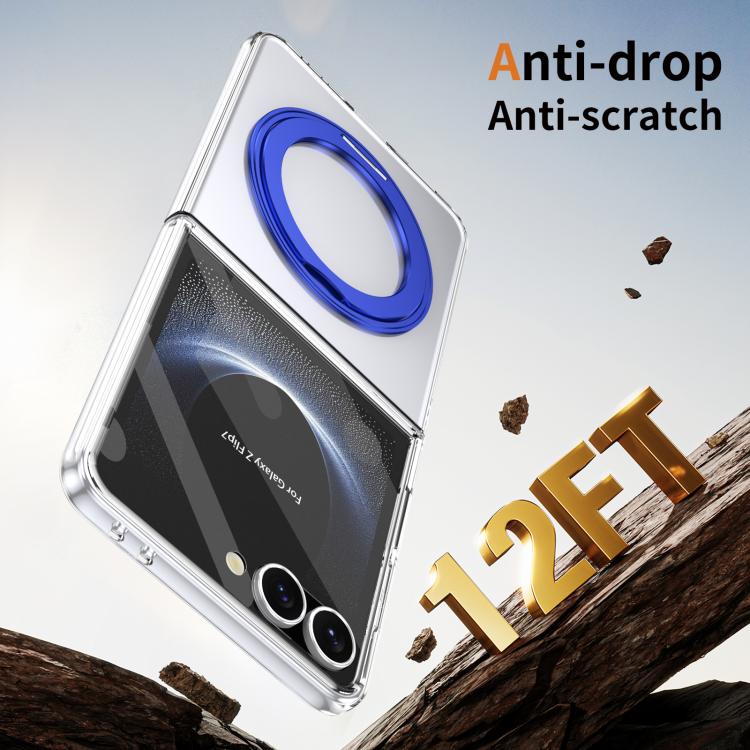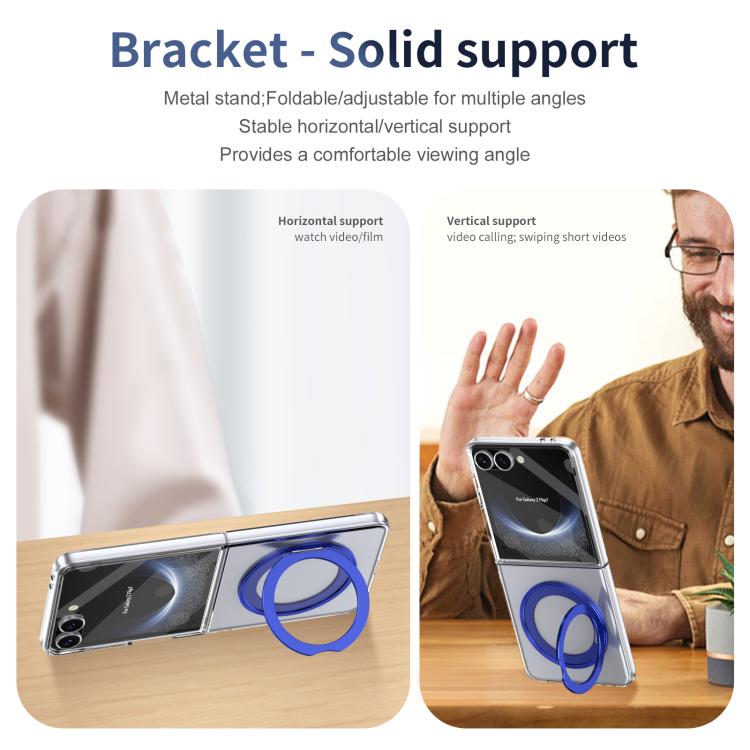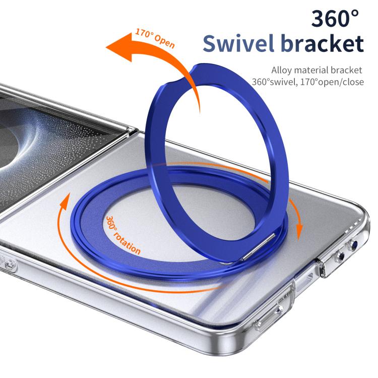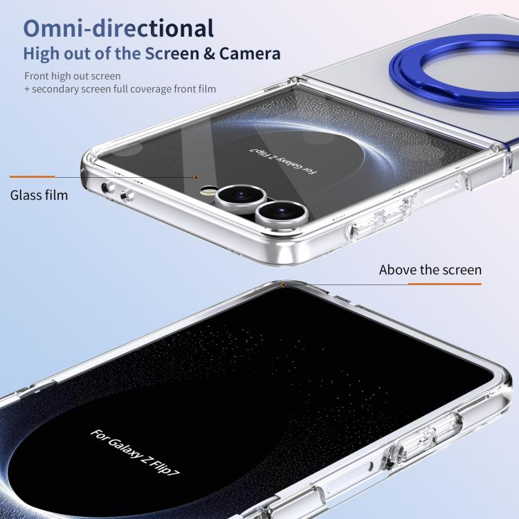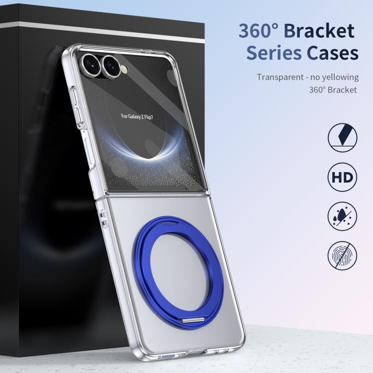 For Samsung Galaxy Z Flip7 5G Integrated Ice-feel High-transparency 360-Degree Rotating Stand MagSafe Folding Phone Case(Blue)