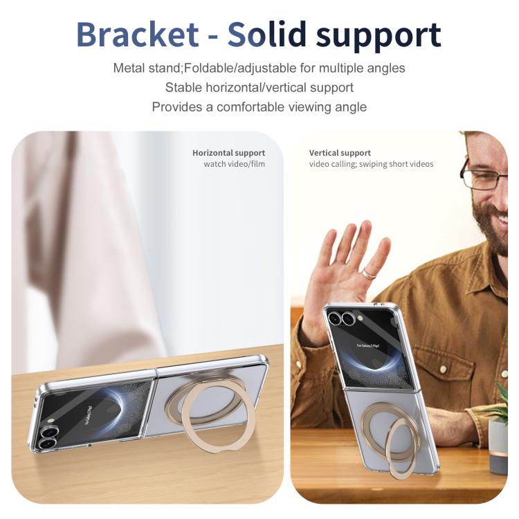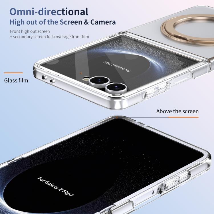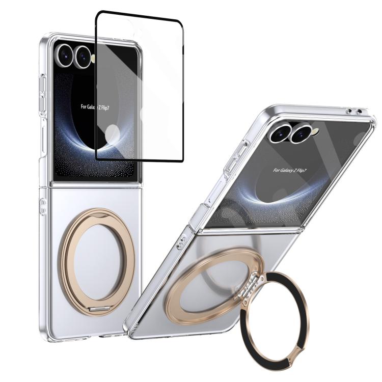 For Samsung Galaxy Z Flip7 5G Integrated Ice-feel High-transparency 360-Degree Rotating Stand MagSafe Folding Phone Case(Desert Gold)