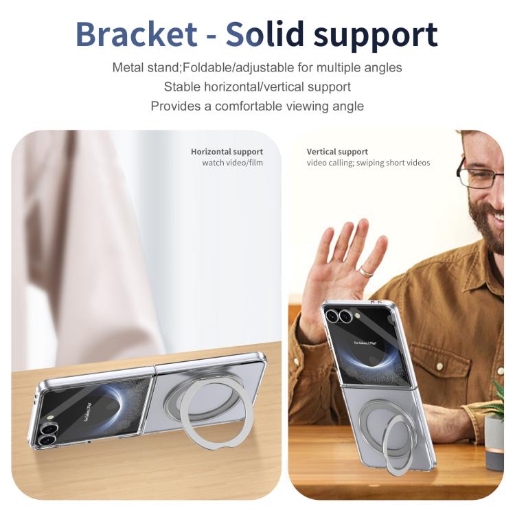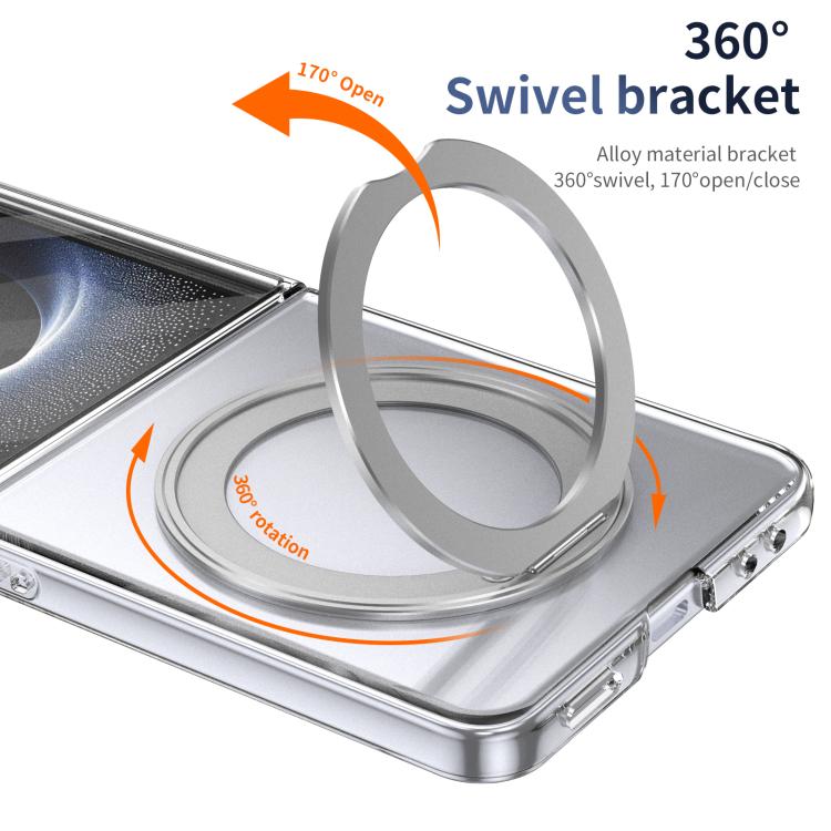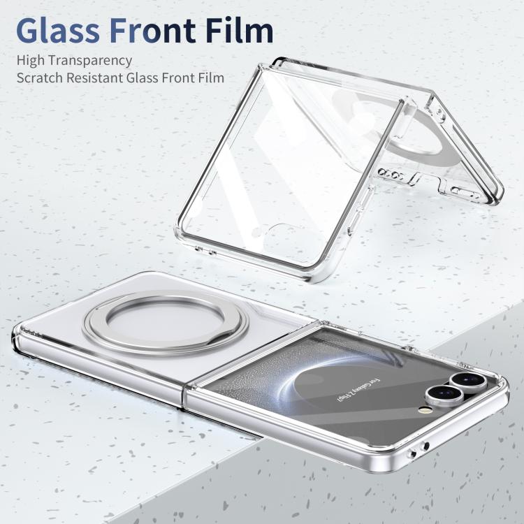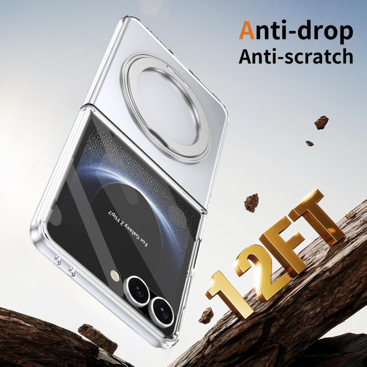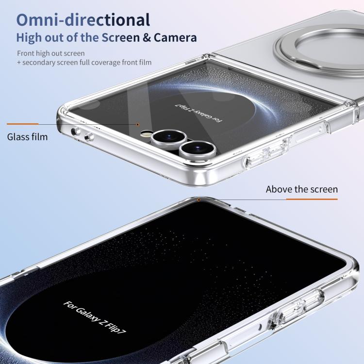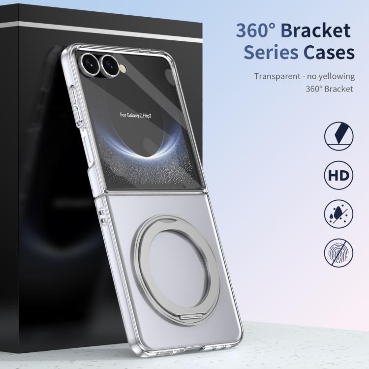 For Samsung Galaxy Z Flip7 5G Integrated Ice-feel High-transparency 360-Degree Rotating Stand MagSafe Folding Phone Case(Silver)