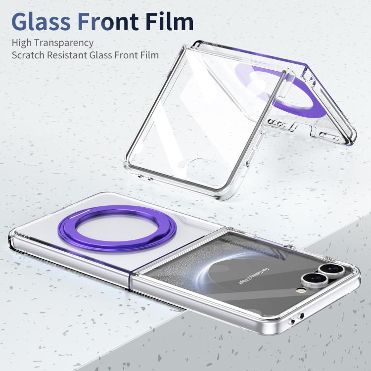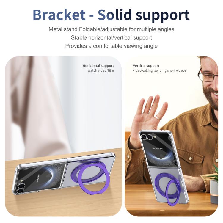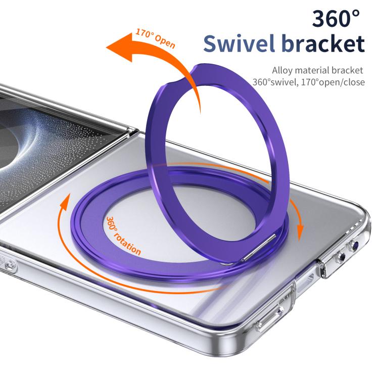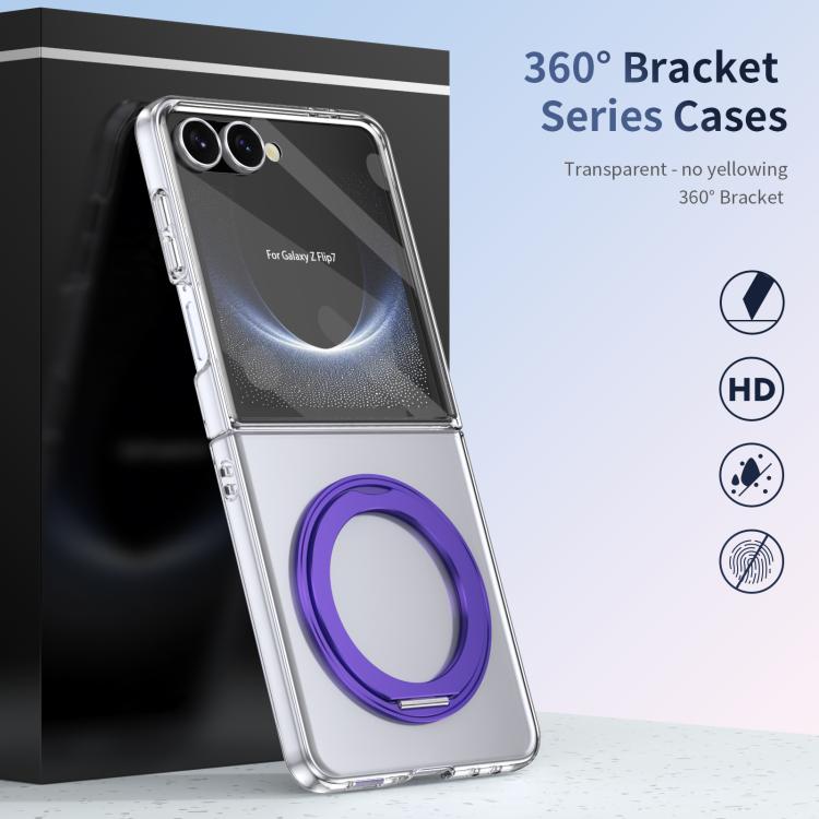 For Samsung Galaxy Z Flip7 5G Integrated Ice-feel High-transparency 360-Degree Rotating Stand MagSafe Folding Phone Case(Violet)