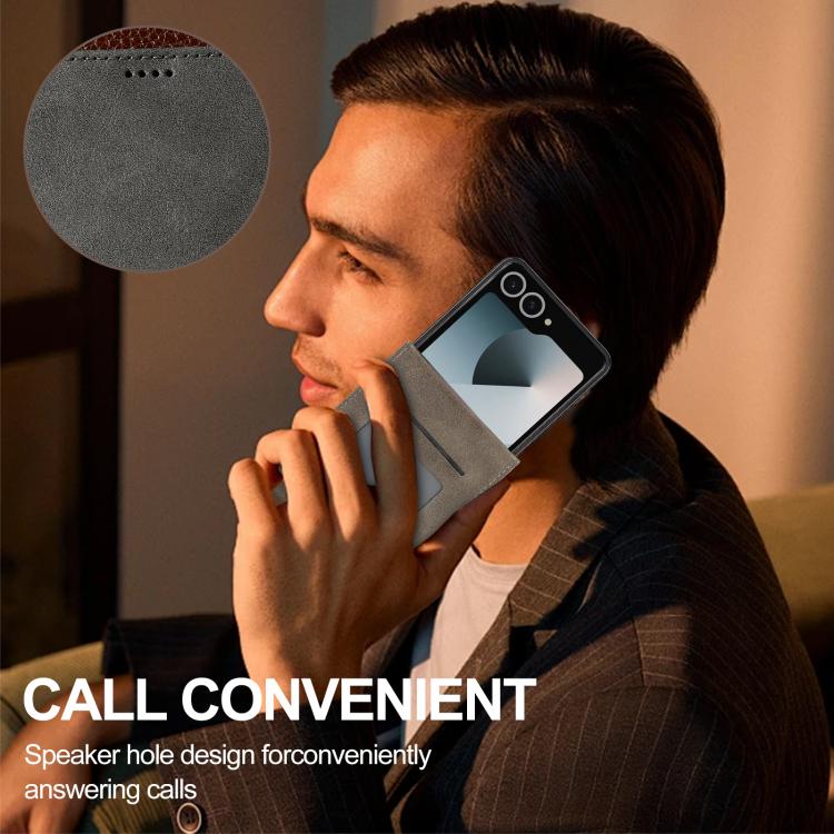 For Samsung Galaxy Z Flip7 5G LC.IMEEKE Calf Texture Leather Phone Case(Grey)