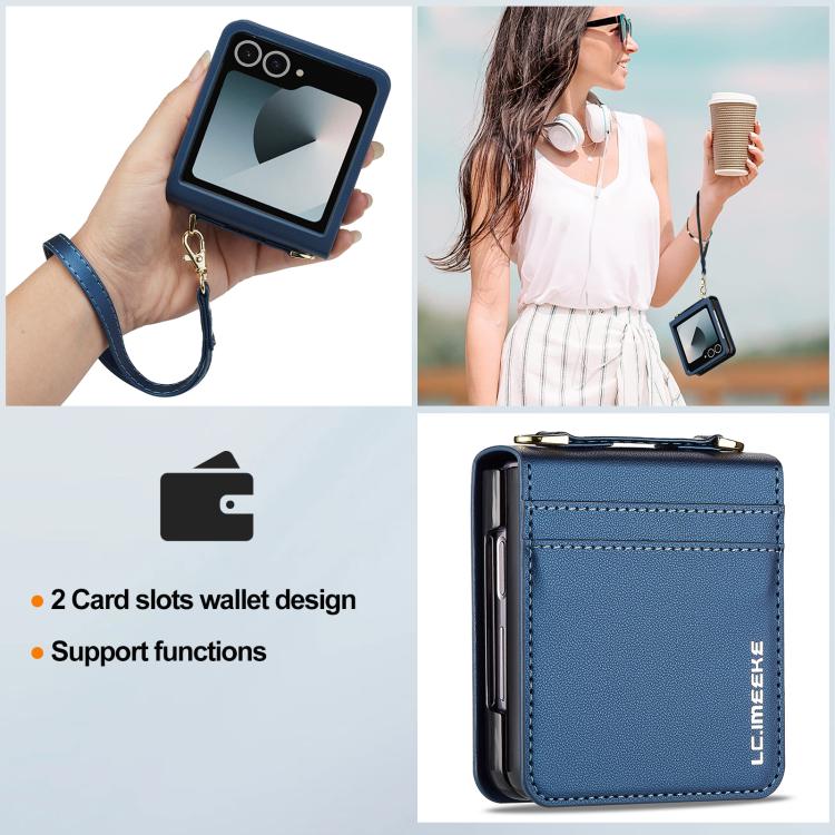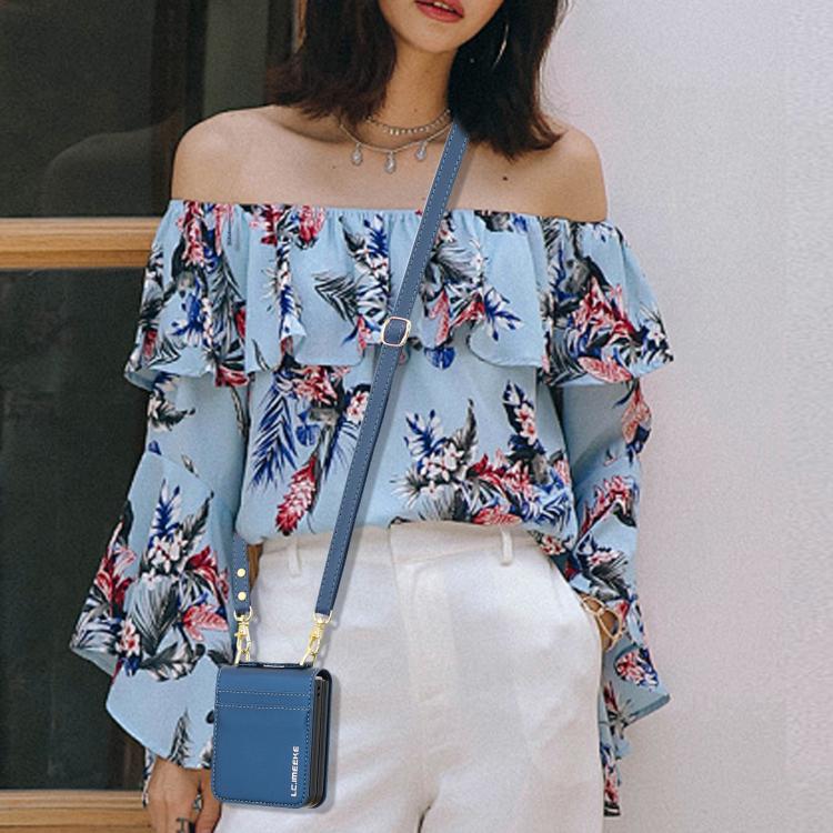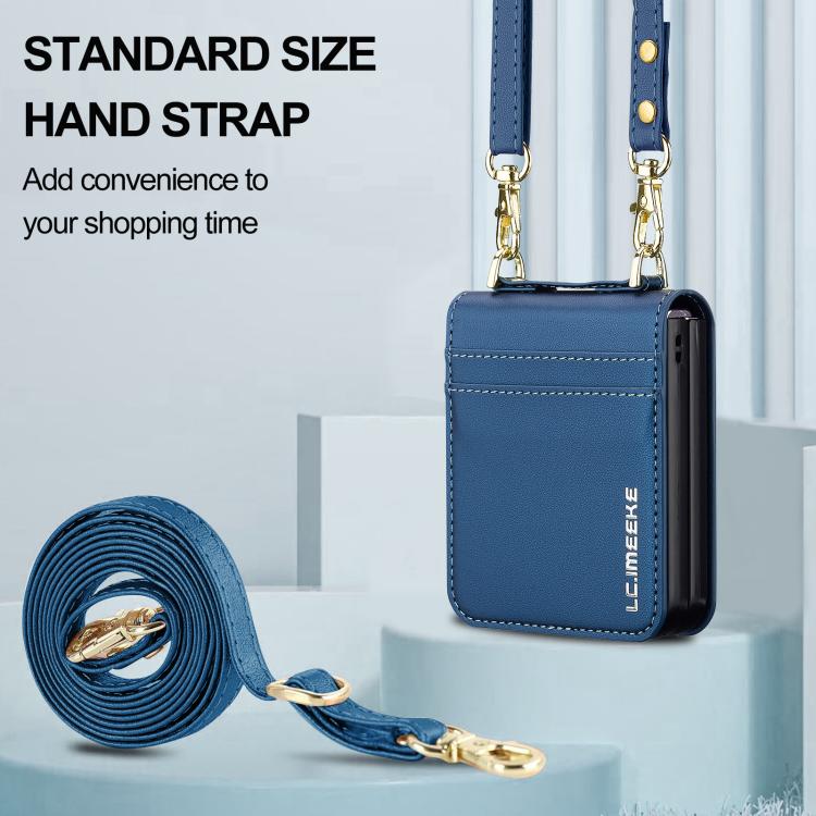 For Samsung Galaxy Z Flip7 5G LC.IMEEKE L1 Series Frosted Fine Texture PU Phone Case with Lanyard(Blue)