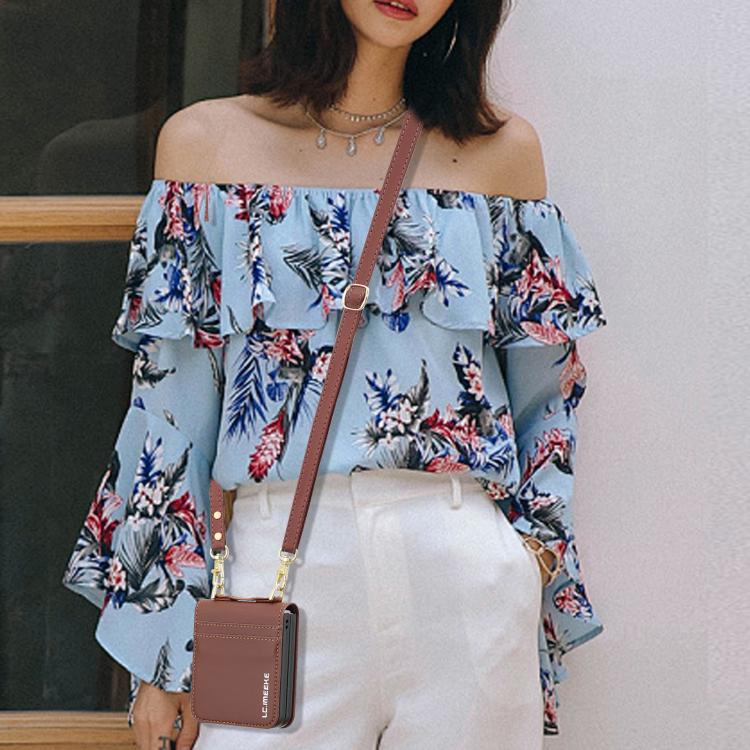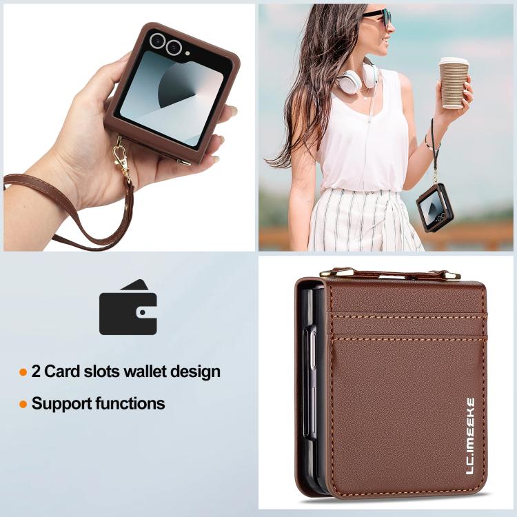 For Samsung Galaxy Z Flip7 5G LC.IMEEKE L1 Series Frosted Fine Texture PU Phone Case with Lanyard(Brown)