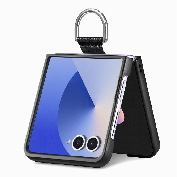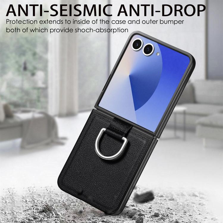 For Samsung Galaxy Z Flip7 5G Litchi Texture Leather Ring Phone Case(Black)