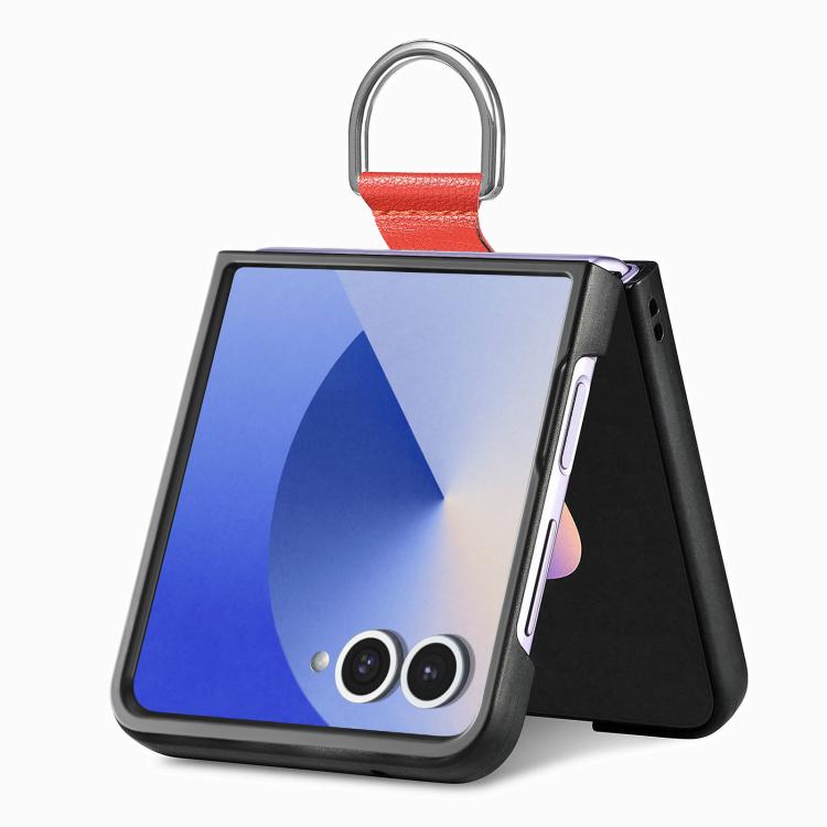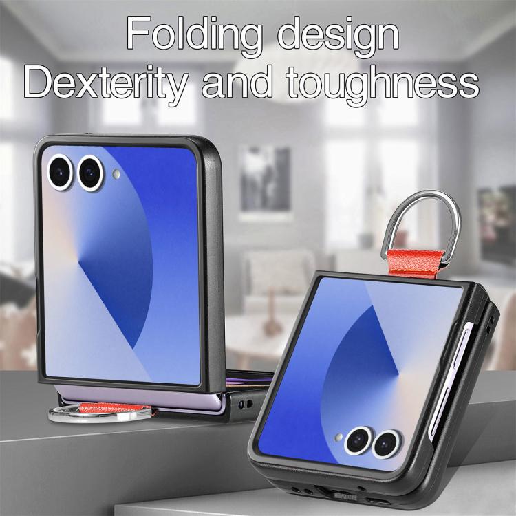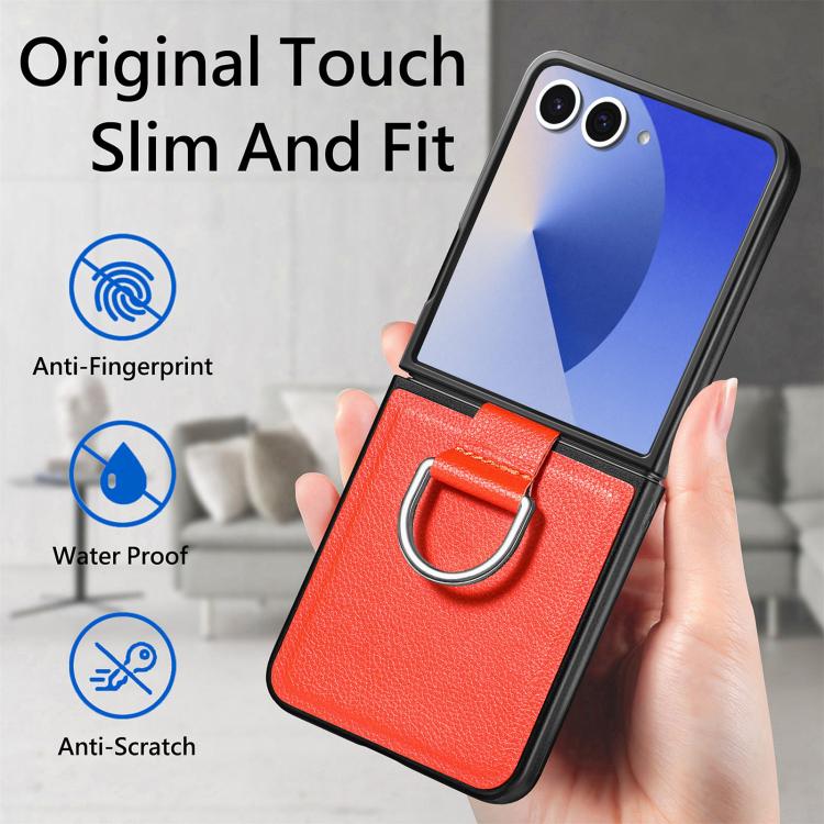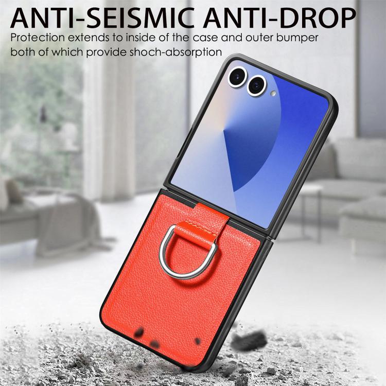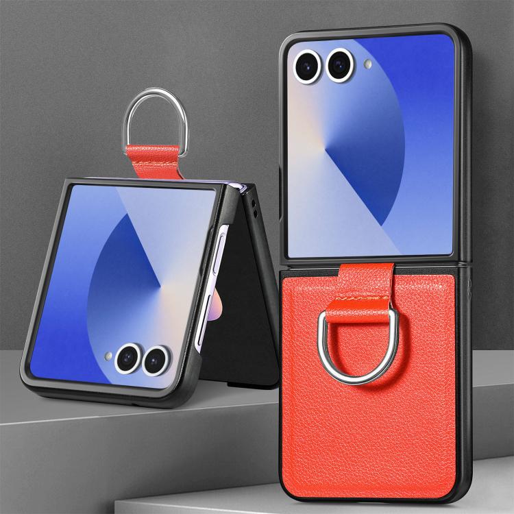 For Samsung Galaxy Z Flip7 5G Litchi Texture Leather Ring Phone Case(Orange)