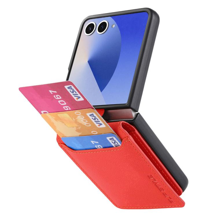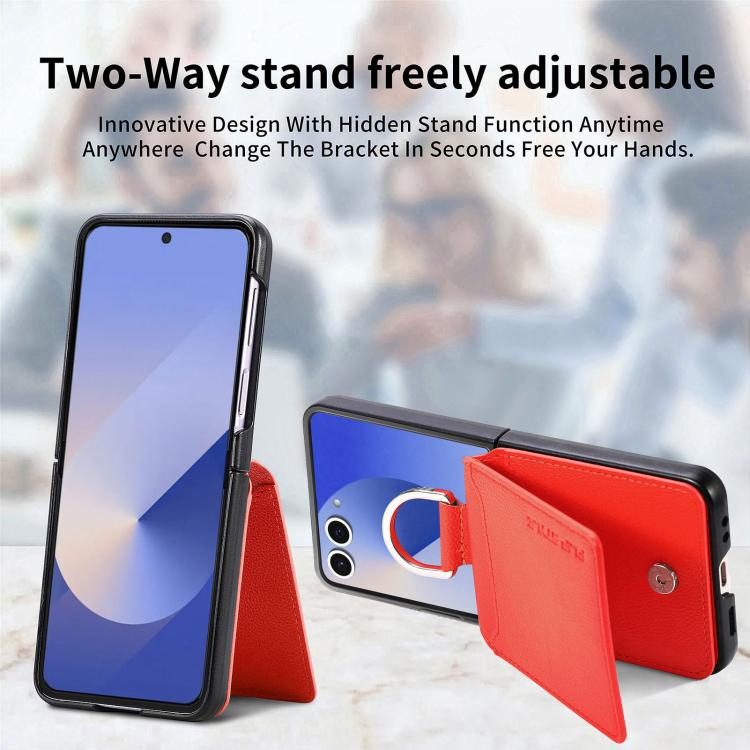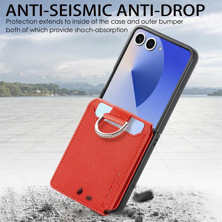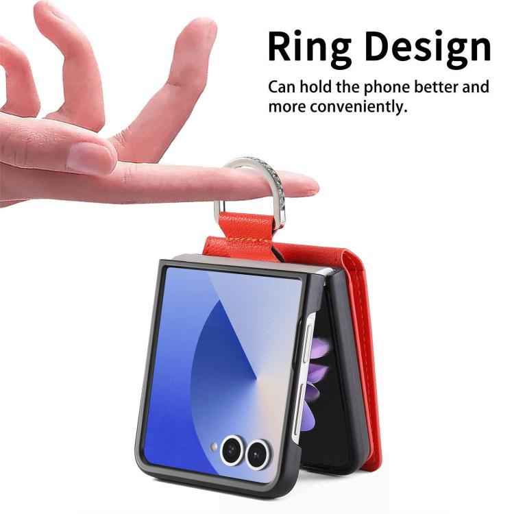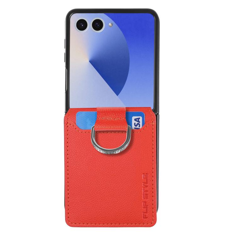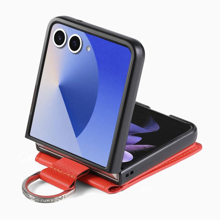 For Samsung Galaxy Z Flip7 5G Litchi Texture Leather Ring Wallet Phone Case(Orange)