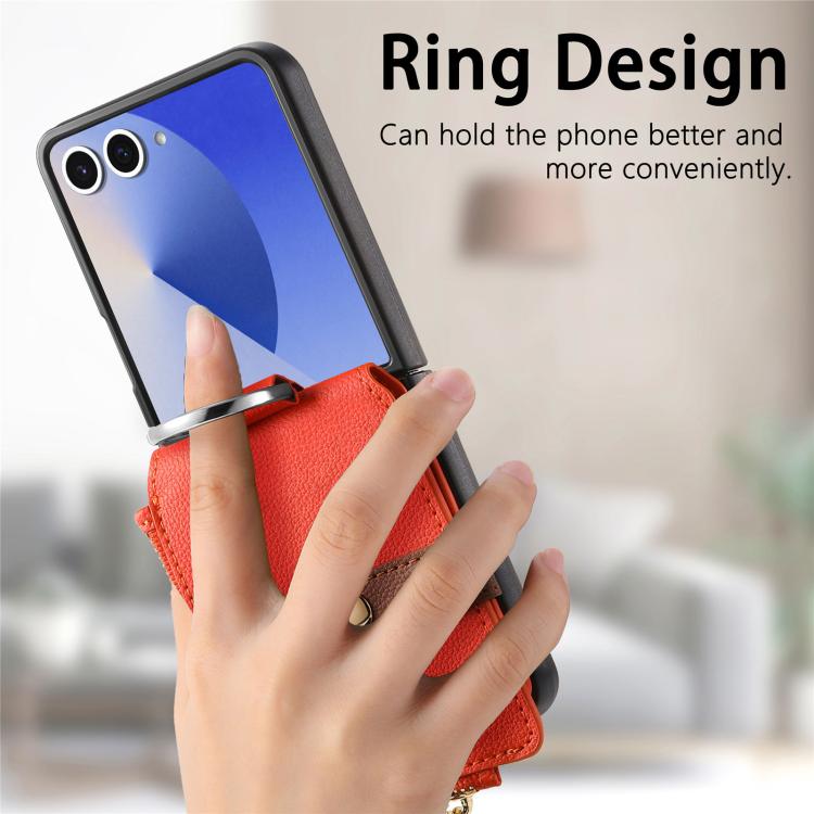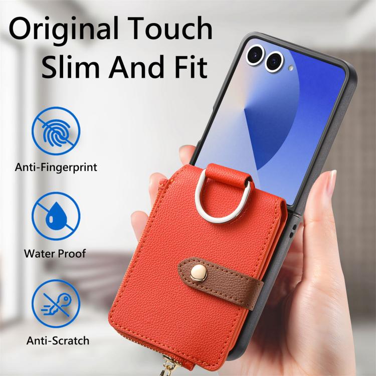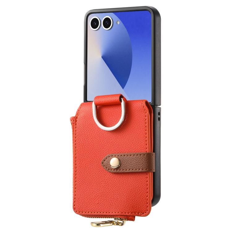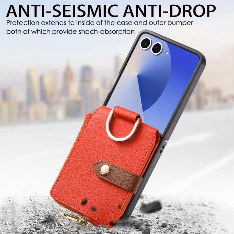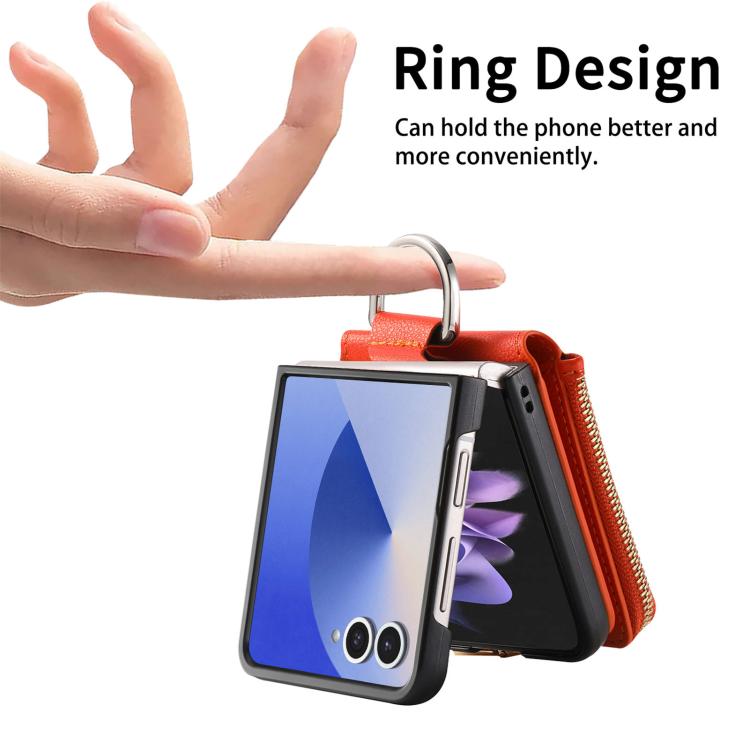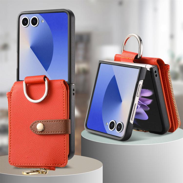 For Samsung Galaxy Z Flip7 5G Litchi Texture Ring Vertical Zipper Wallet Phone Case(Orange)