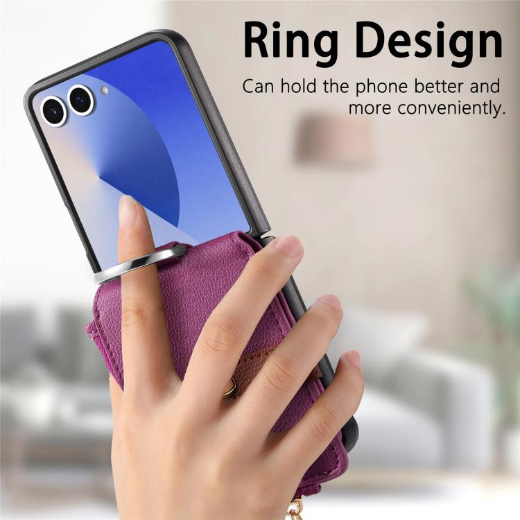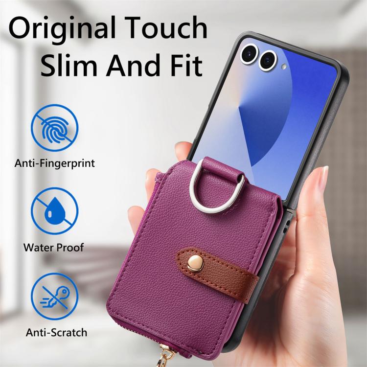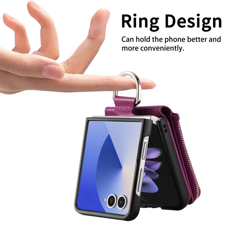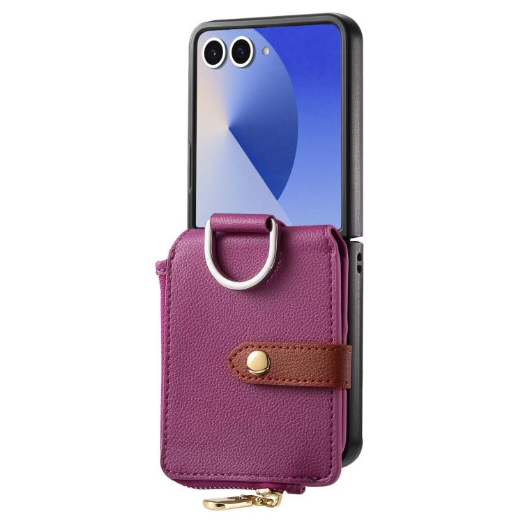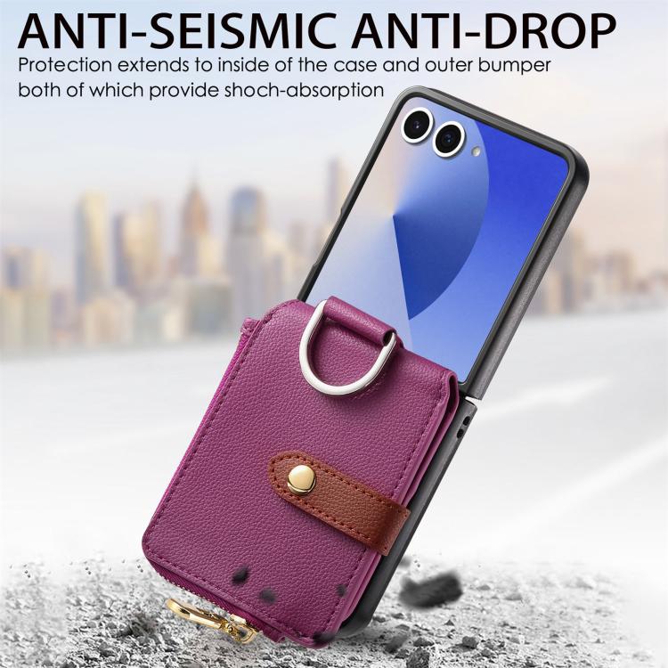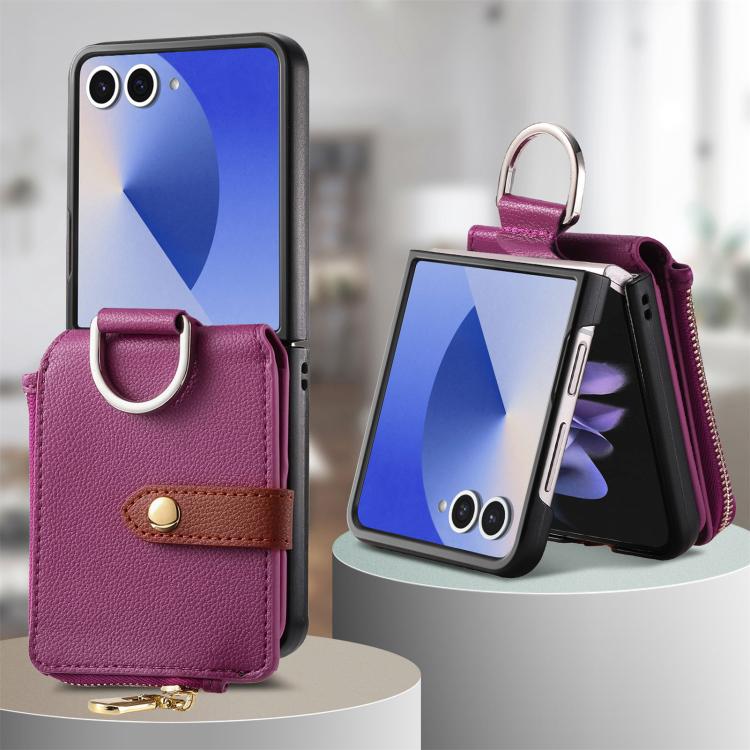 For Samsung Galaxy Z Flip7 5G Litchi Texture Ring Vertical Zipper Wallet Phone Case(Purple)