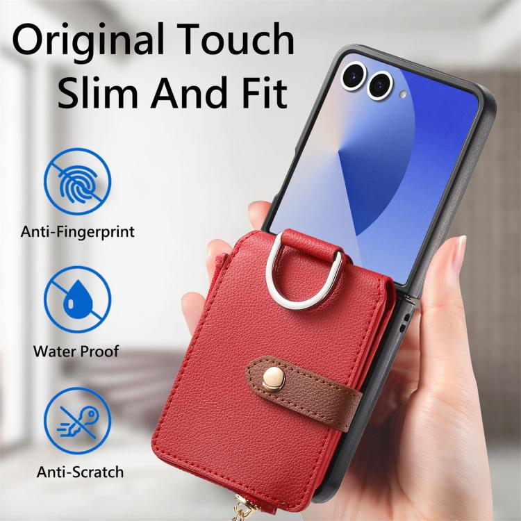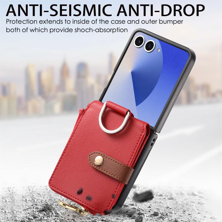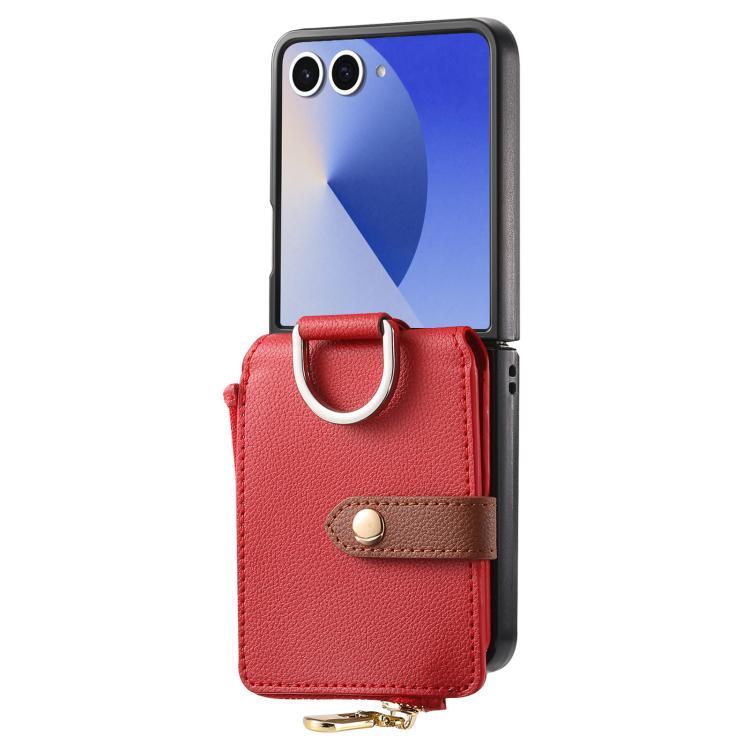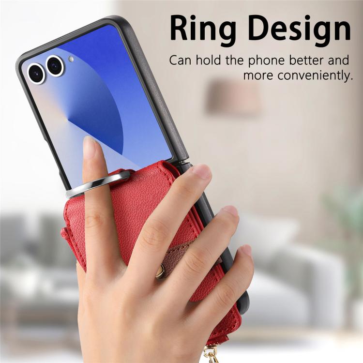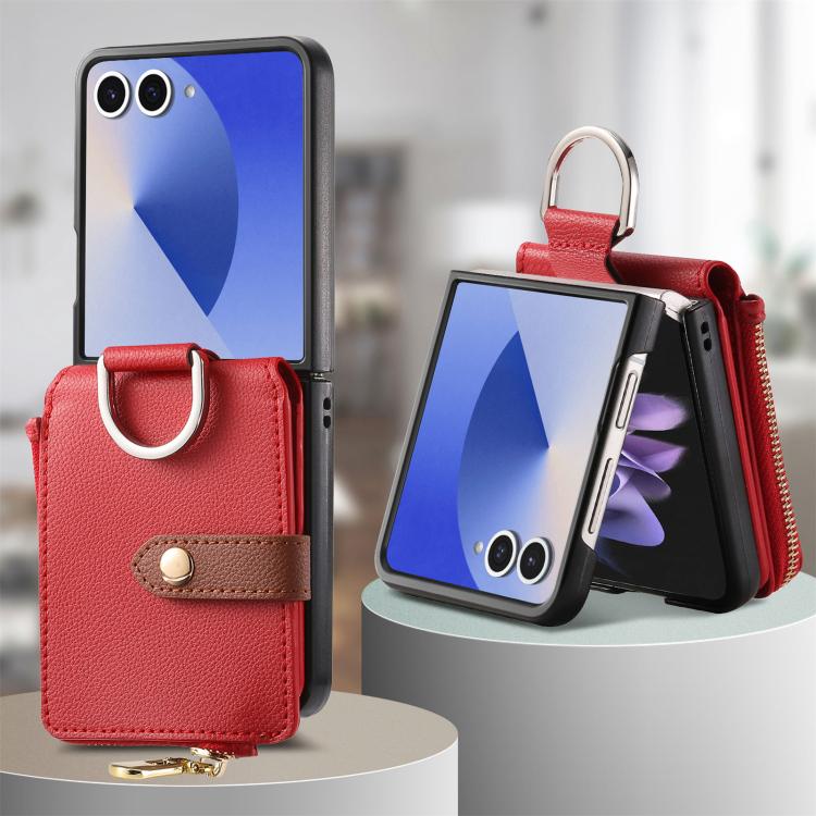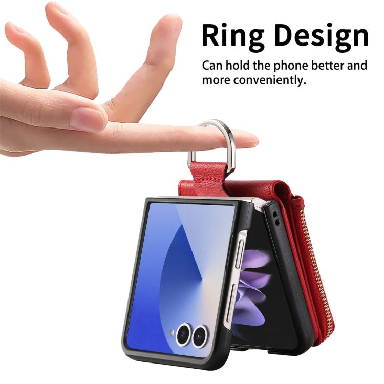 For Samsung Galaxy Z Flip7 5G Litchi Texture Ring Vertical Zipper Wallet Phone Case(Red)