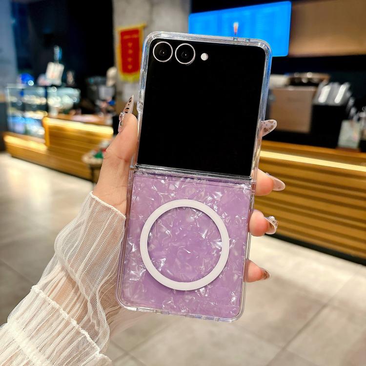 For Samsung Galaxy Z Flip7 5G Pearlescent Shell Texture MagSafe Phone Case(Beige)