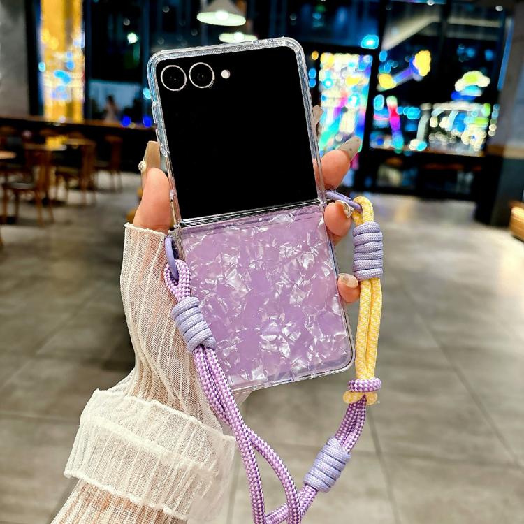 For Samsung Galaxy Z Flip7 5G Pearlescent Shell Texture Side Buckle Phone Case with Rainbow Bracelet(Purple)