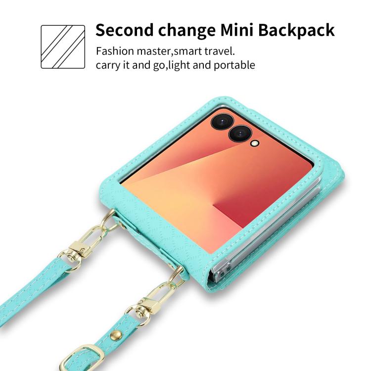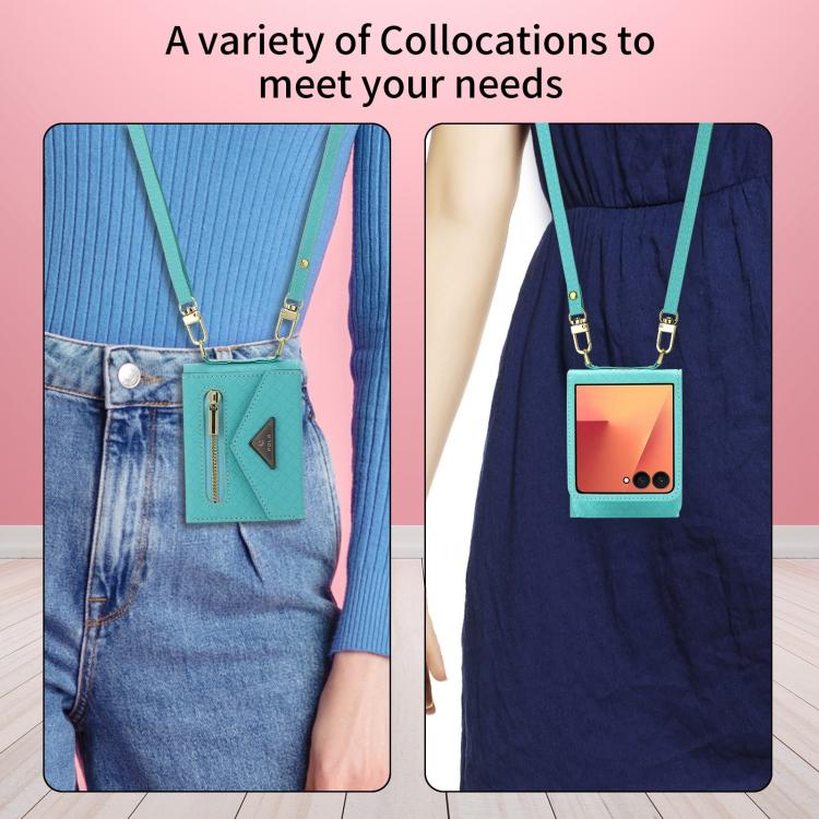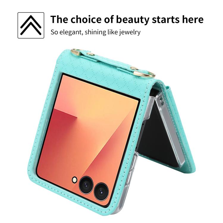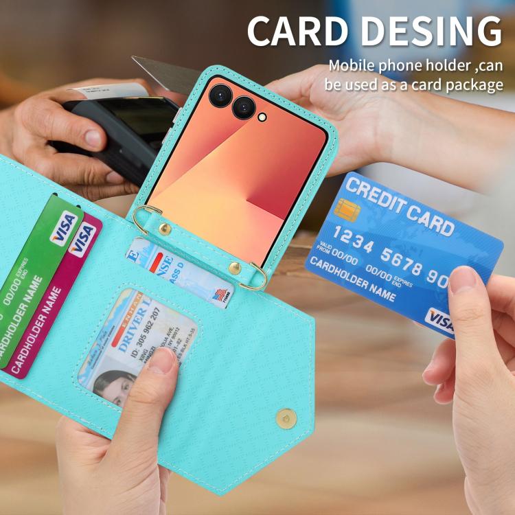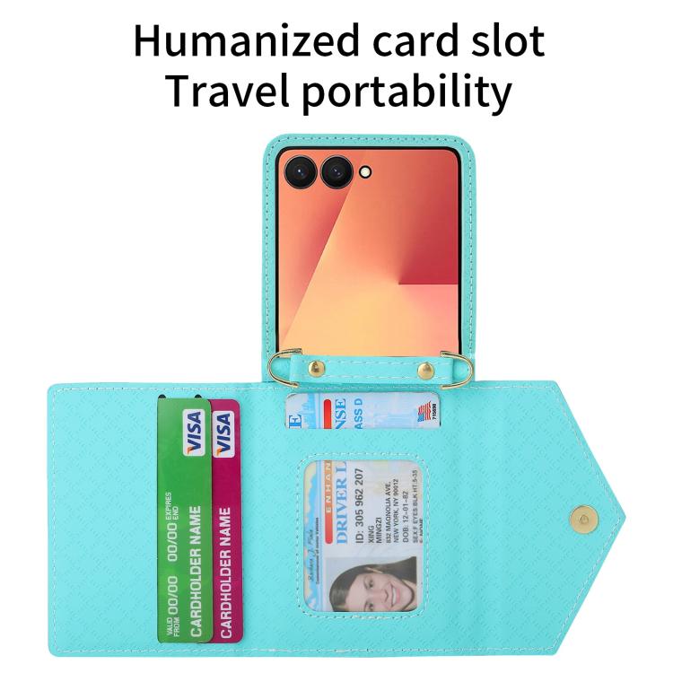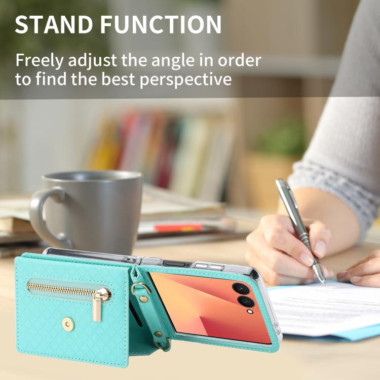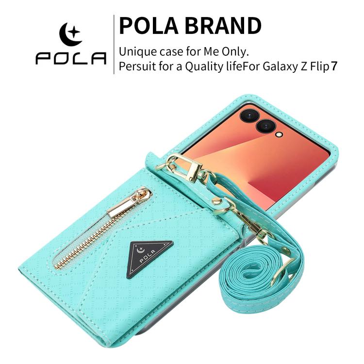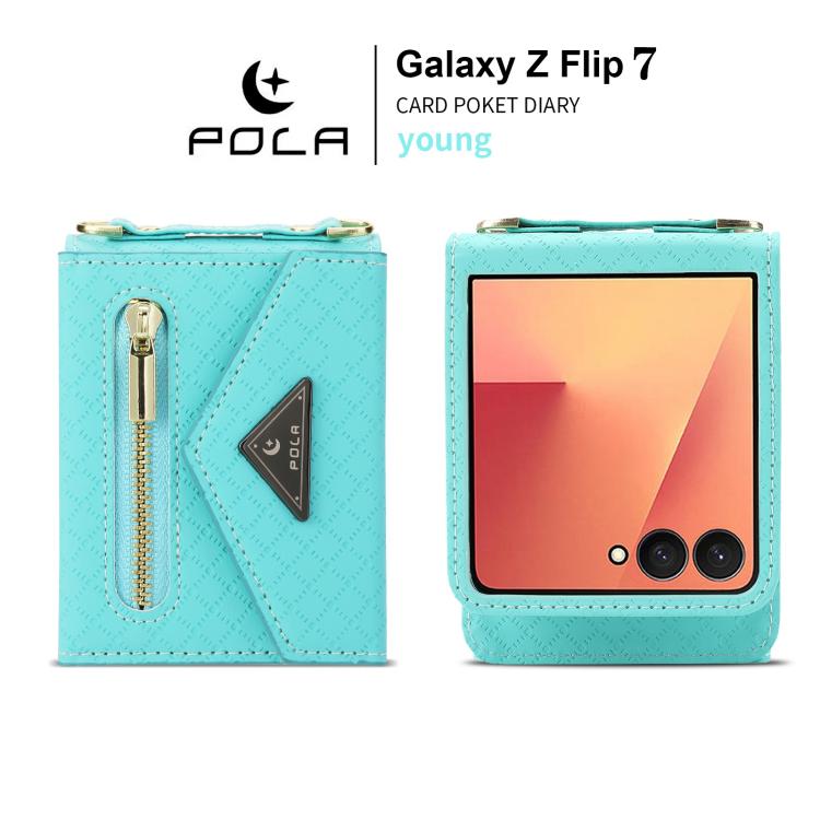 For Samsung Galaxy Z Flip7 5G POLA Grid Texture Multi-Card Slots Zipper Wallet Phone Case(Blue)