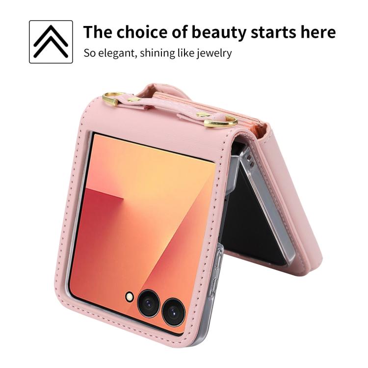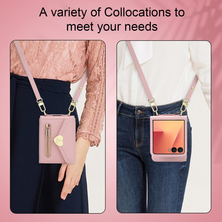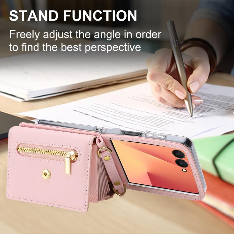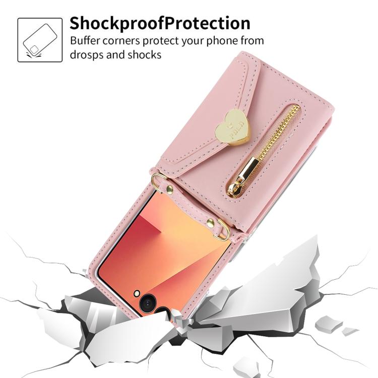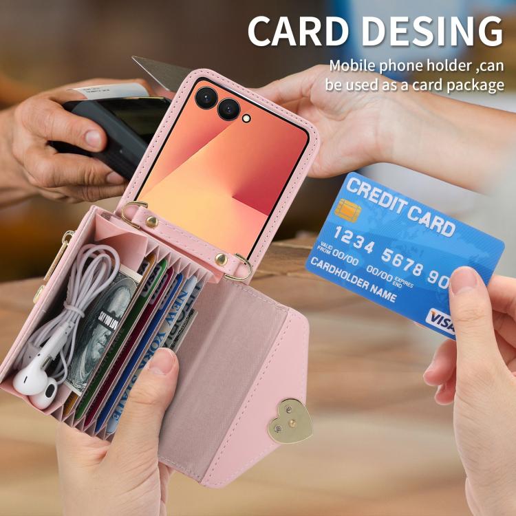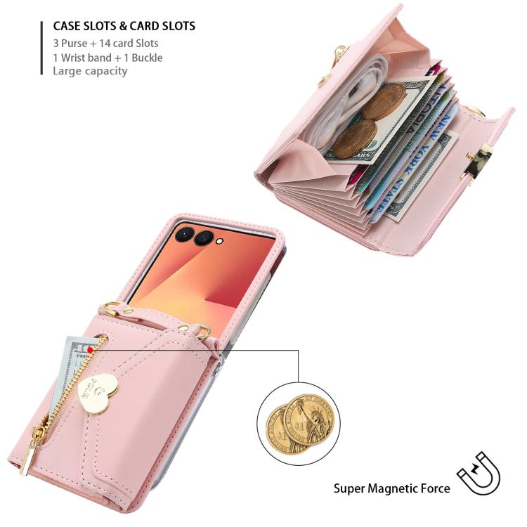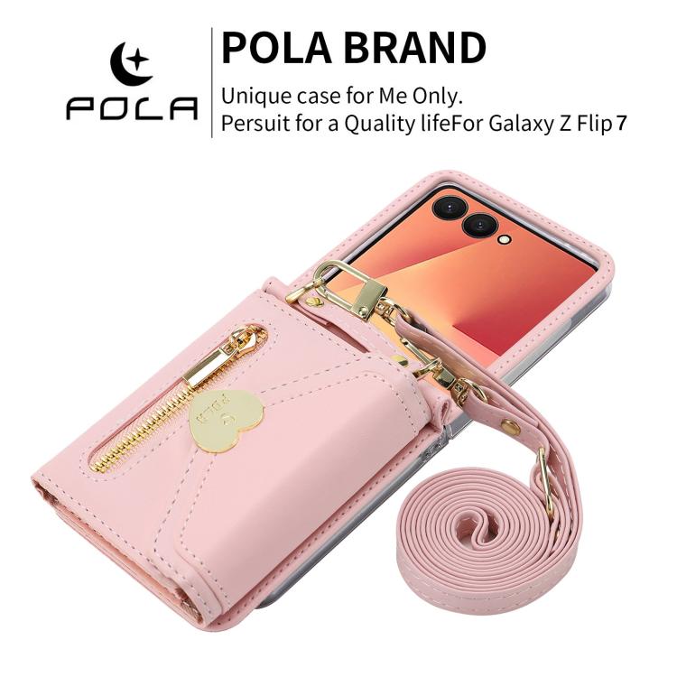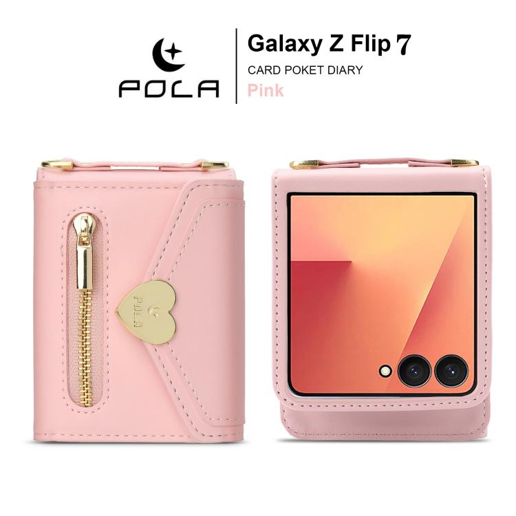 For Samsung Galaxy Z Flip7 5G POLA Love Buckle Multi-Card Slots Zipper Wallet Phone Case(Pink)