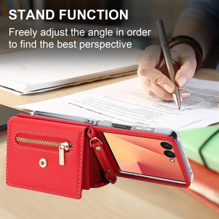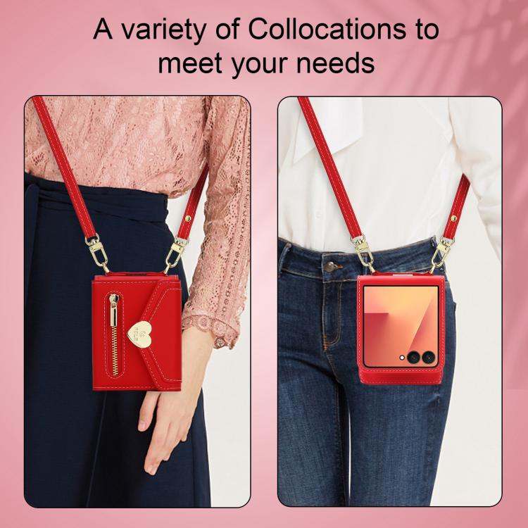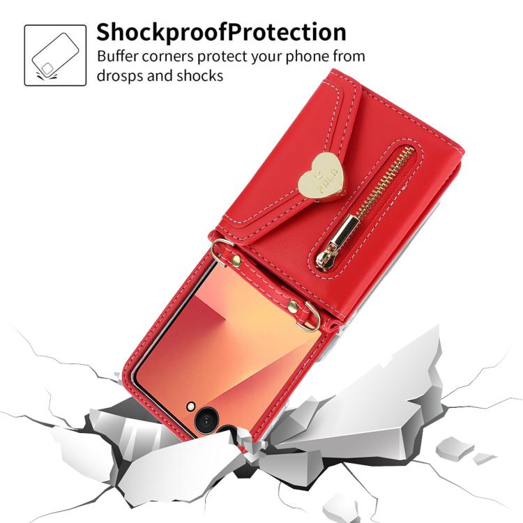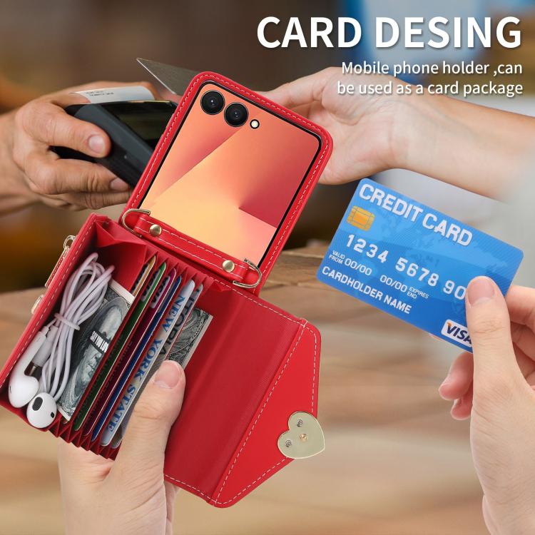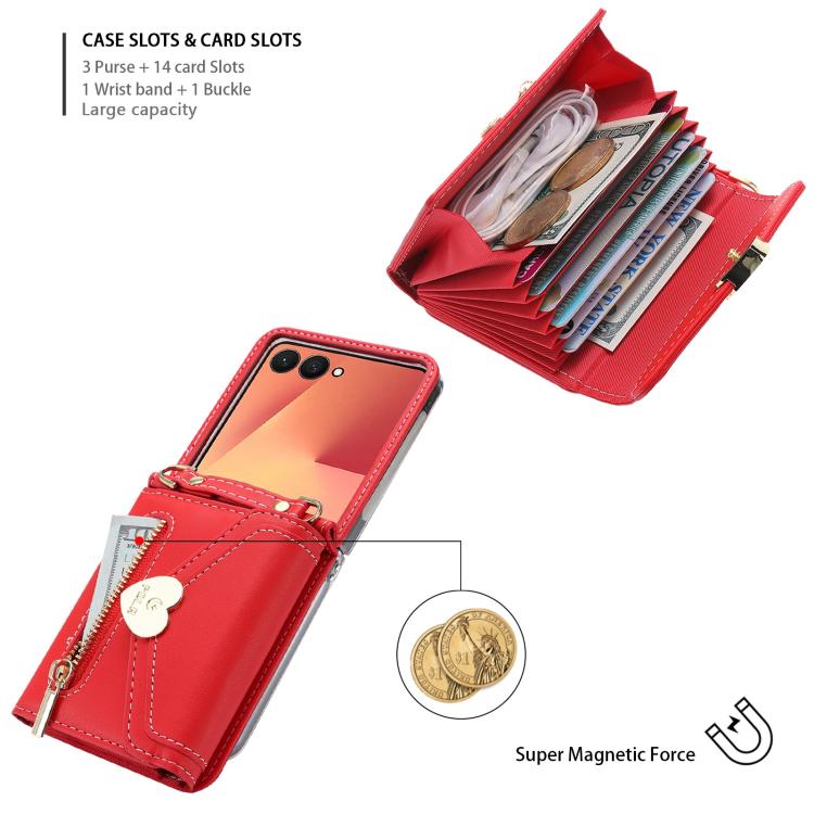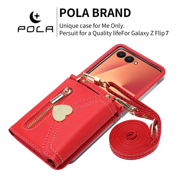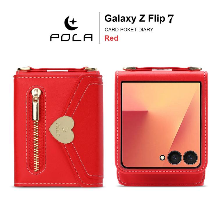 For Samsung Galaxy Z Flip7 5G POLA Love Buckle Multi-Card Slots Zipper Wallet Phone Case(Red)