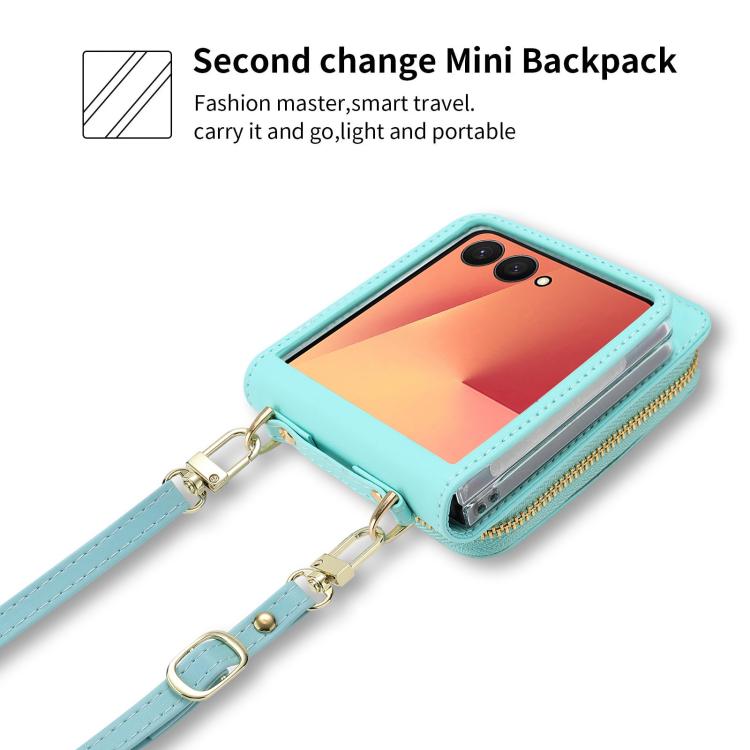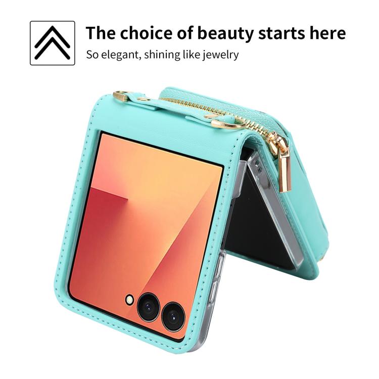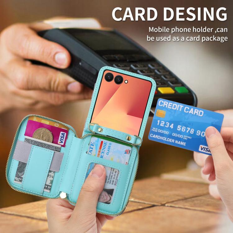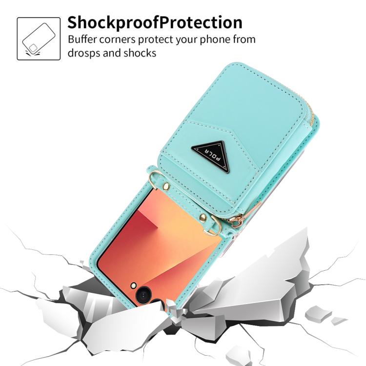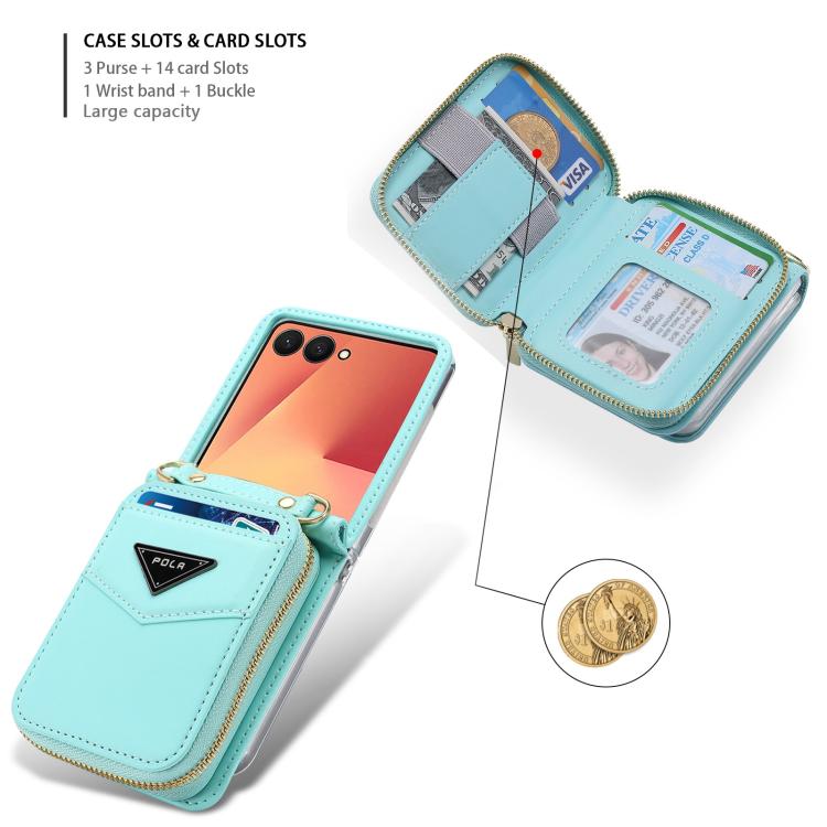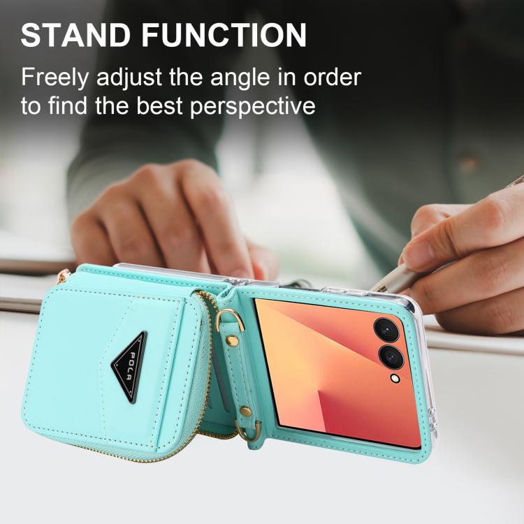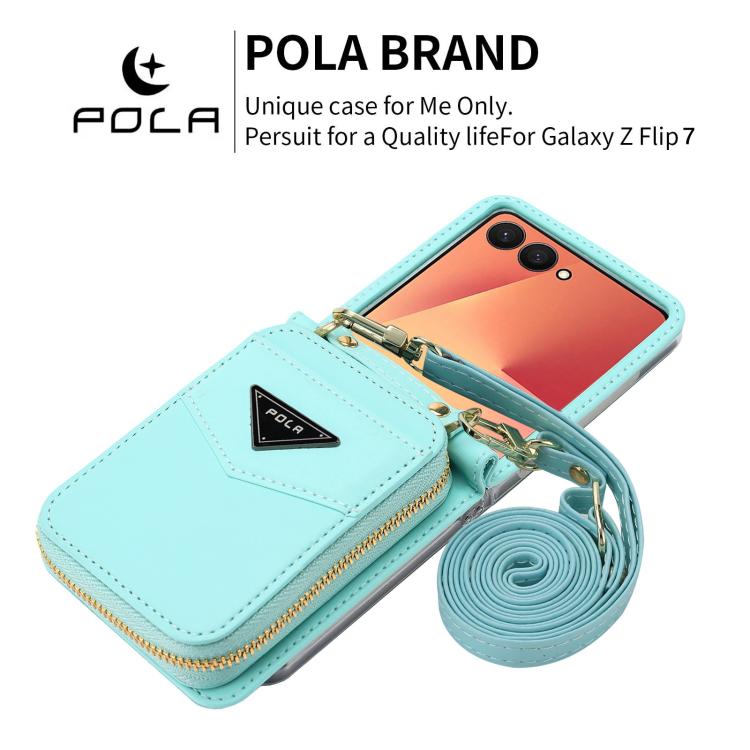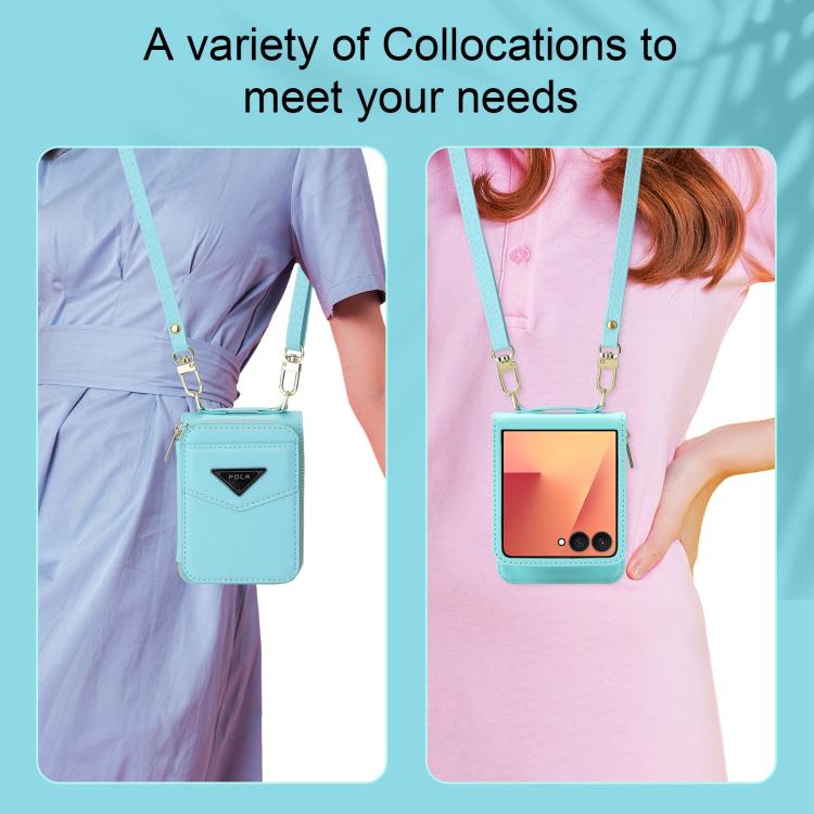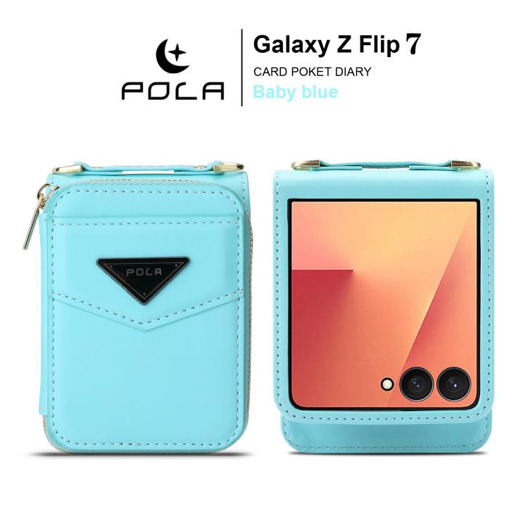 For Samsung Galaxy Z Flip7 5G POLA Multi-Card Slots Zipper Wallet Phone Case(Blue)