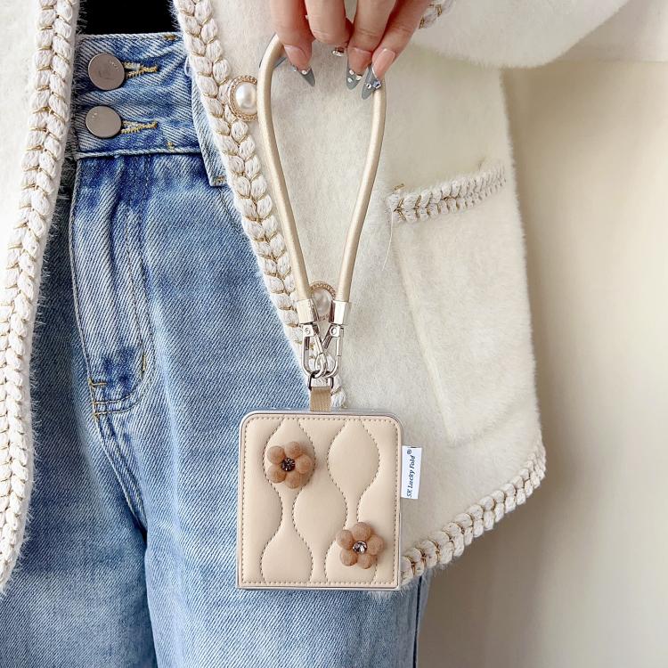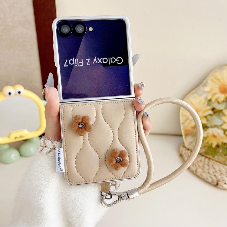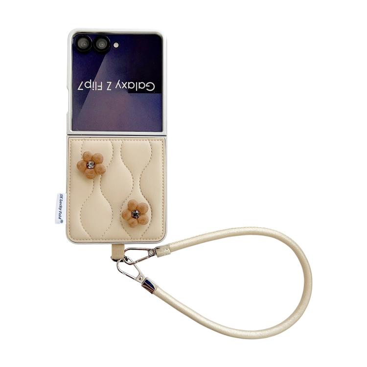 For Samsung Galaxy Z Flip7 5G Puffer Jacket Chic Phone Case with Wrist Strap(Flower)