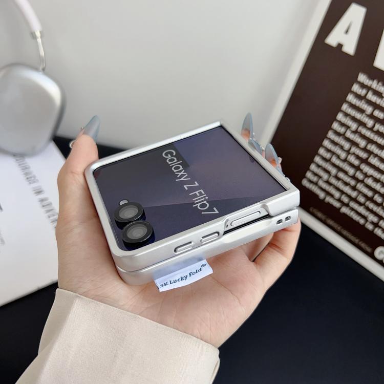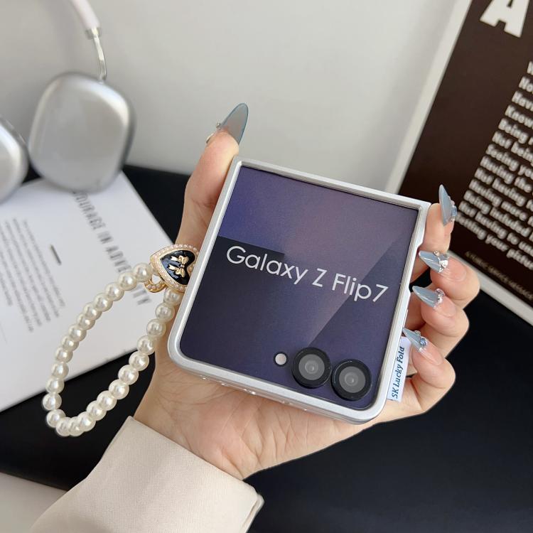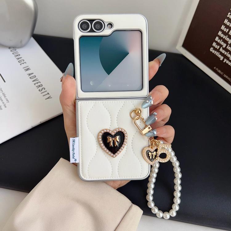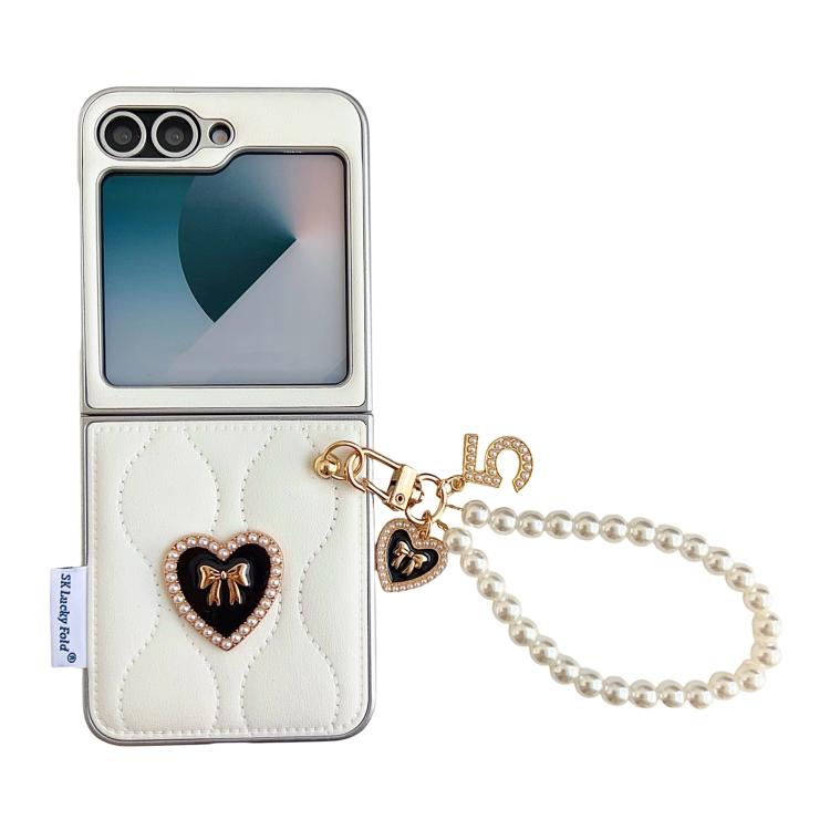 For Samsung Galaxy Z Flip7 5G Puffer Jacket Texture 3D Heart Phone Case with Wrist Strap(White)
