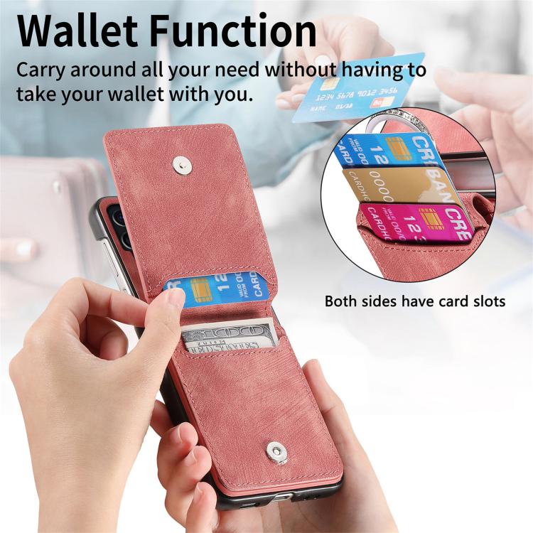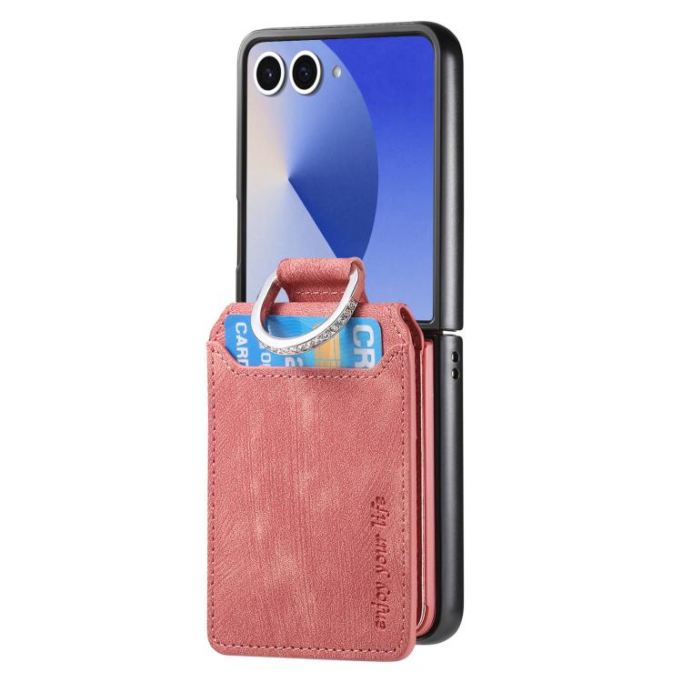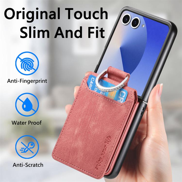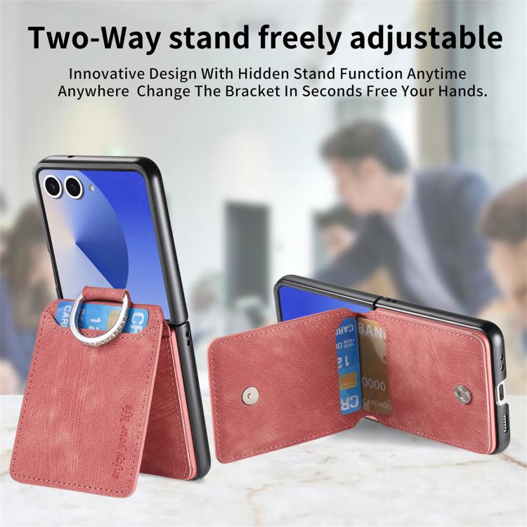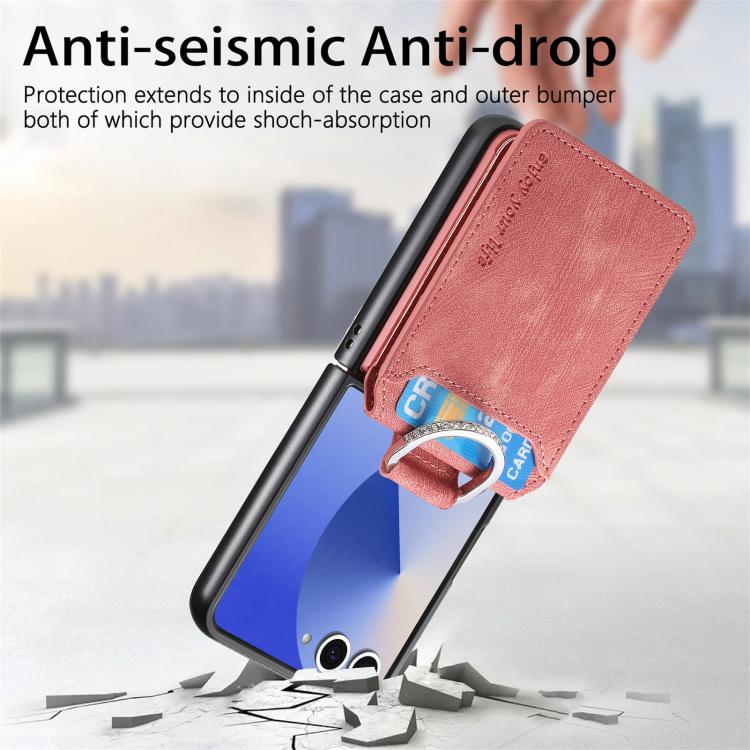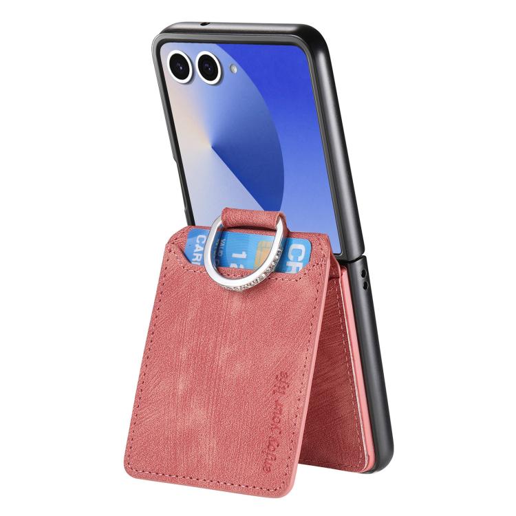 For Samsung Galaxy Z Flip7 5G Retro Leather Ring Vertical Flip Wallet Phone Case(Pink)