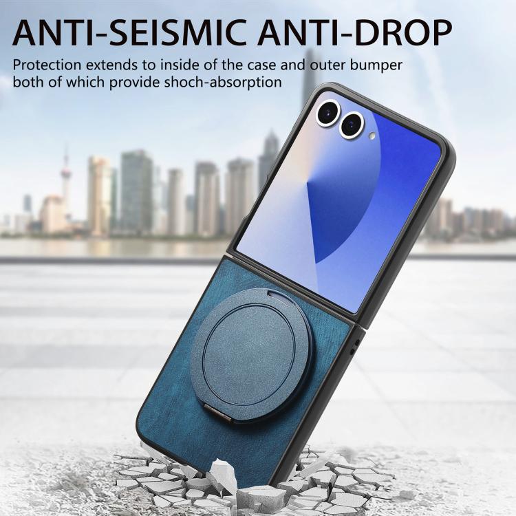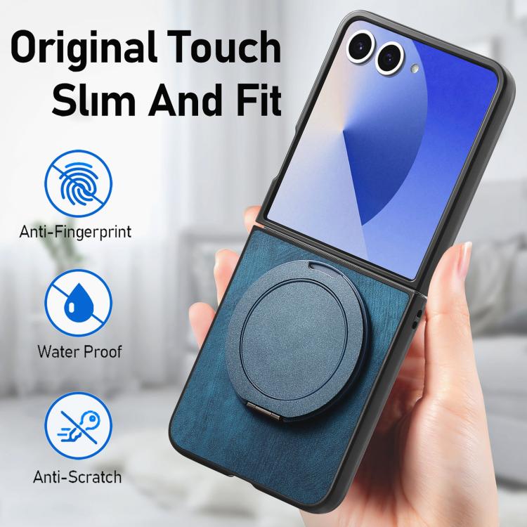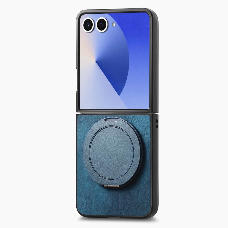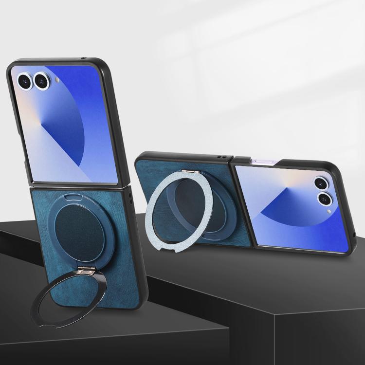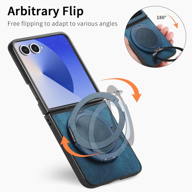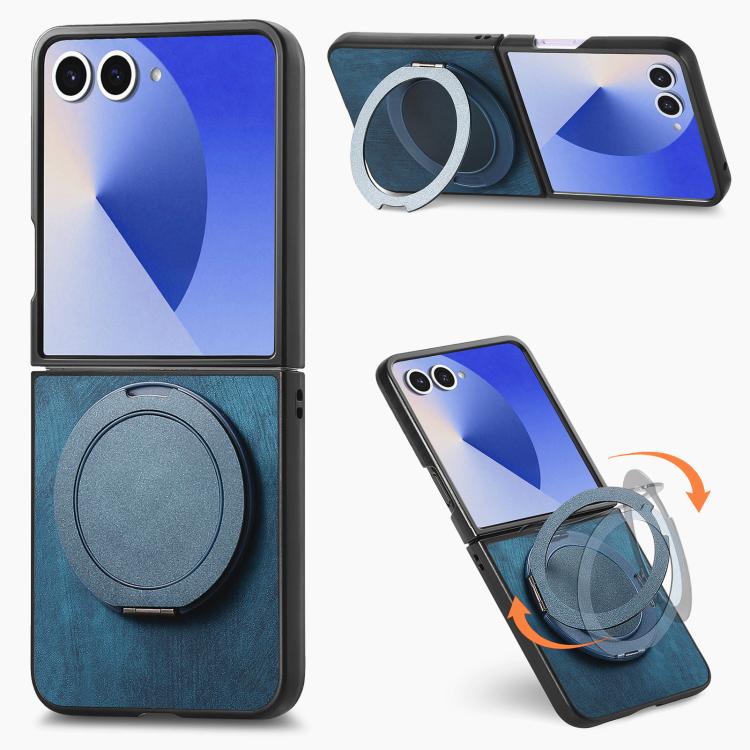 For Samsung Galaxy Z Flip7 5G Retro Leather Rotation Round Holder Phone Case(Blue)