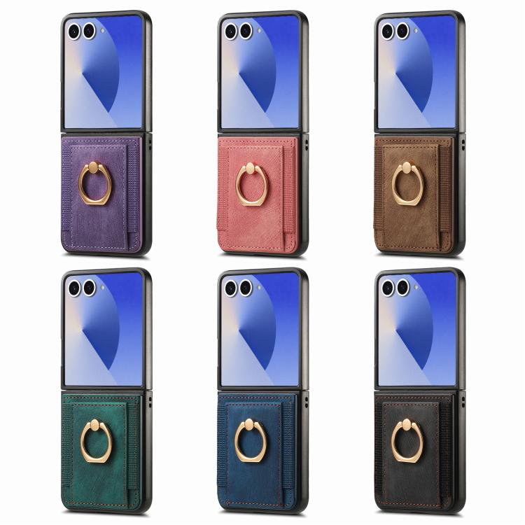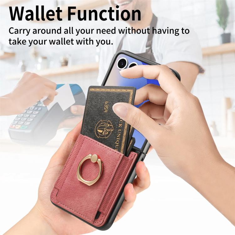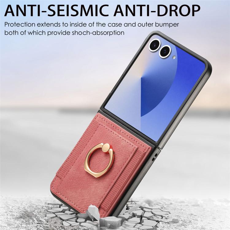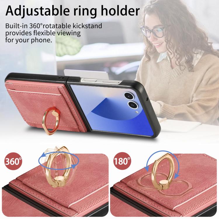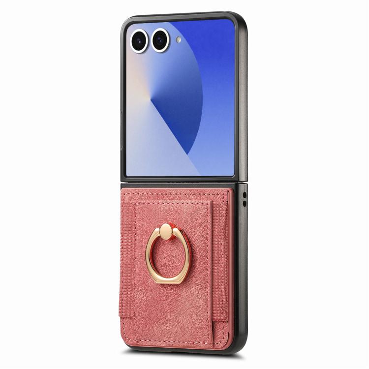 For Samsung Galaxy Z Flip7 5G Retro Skin-feel Ring Card Bag Phone Case(Pink)