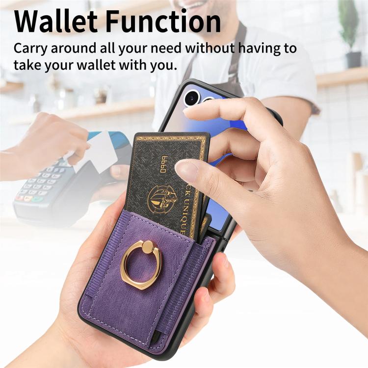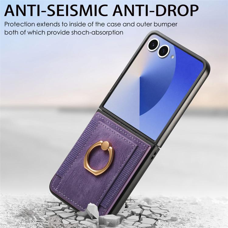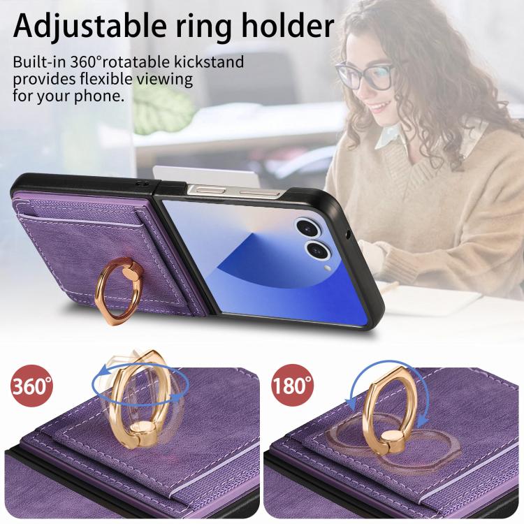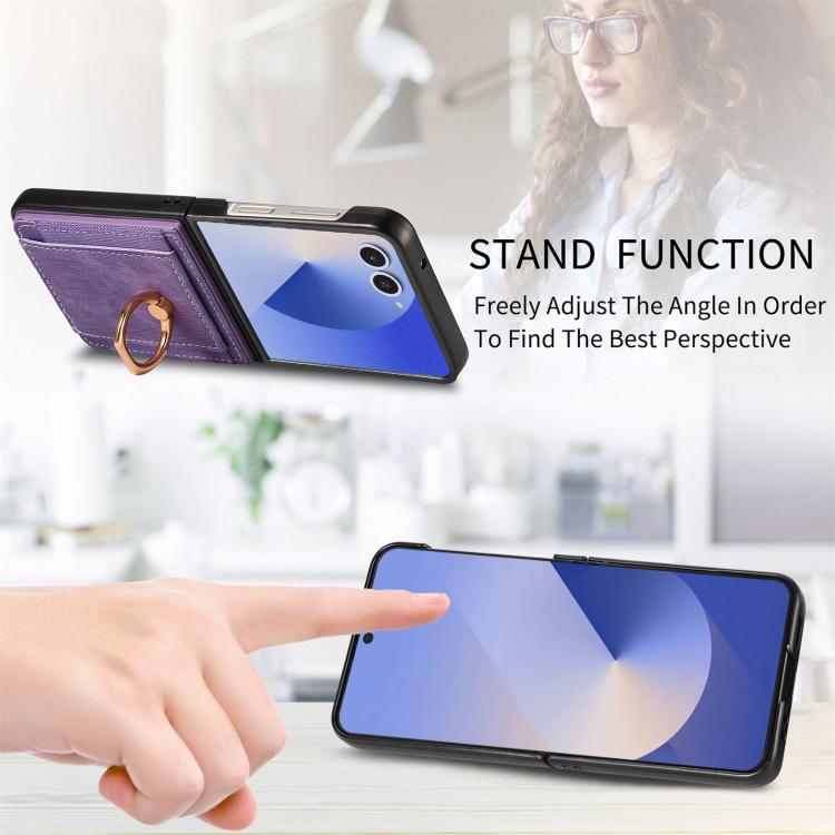 For Samsung Galaxy Z Flip7 5G Retro Skin-feel Ring Card Bag Phone Case(Purple)