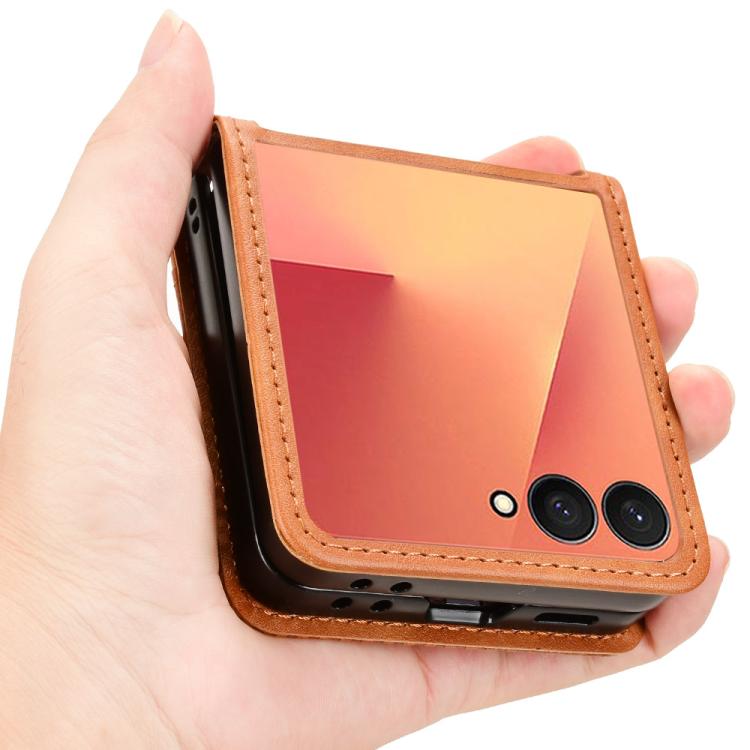 For Samsung Galaxy Z Flip7 5G Retro Texture Leather Phone Case(Brown)