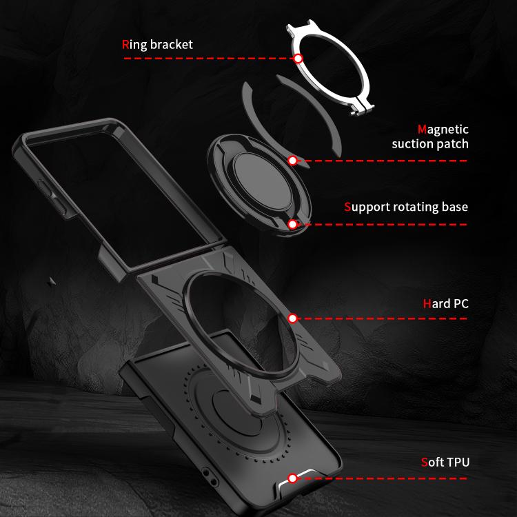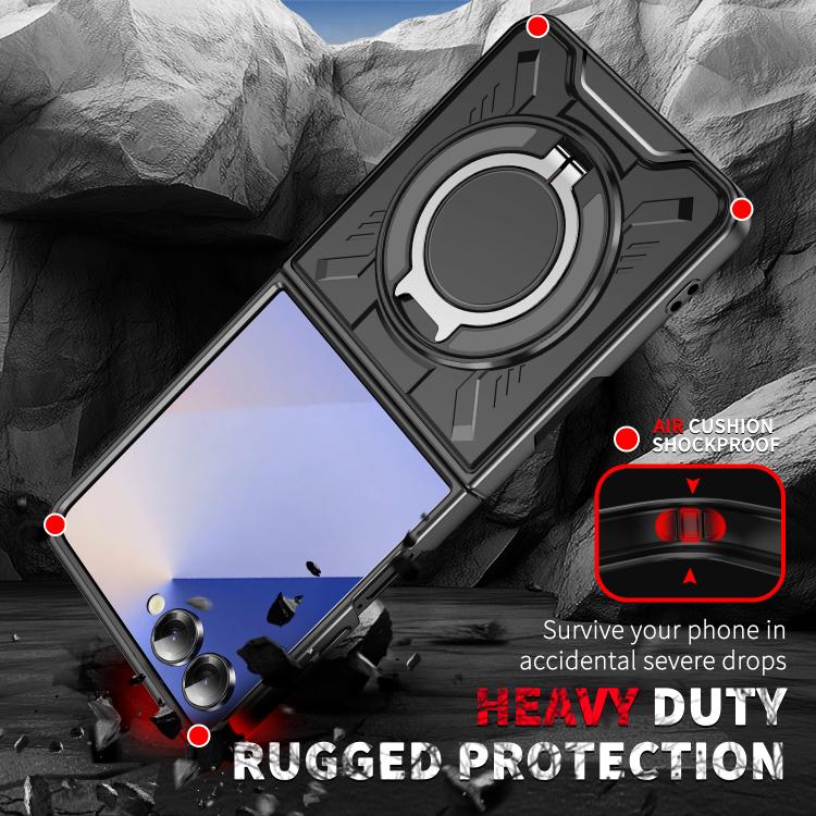For Samsung Galaxy Z Flip7 5G Rotating Ring Holder Magnetic MagSafe Phone Case(Black)