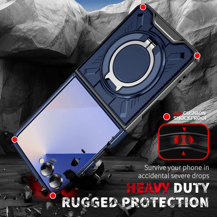 For Samsung Galaxy Z Flip7 5G Rotating Ring Holder Magnetic MagSafe Phone Case(Blue)