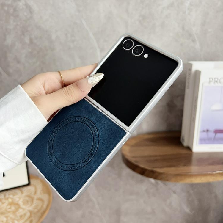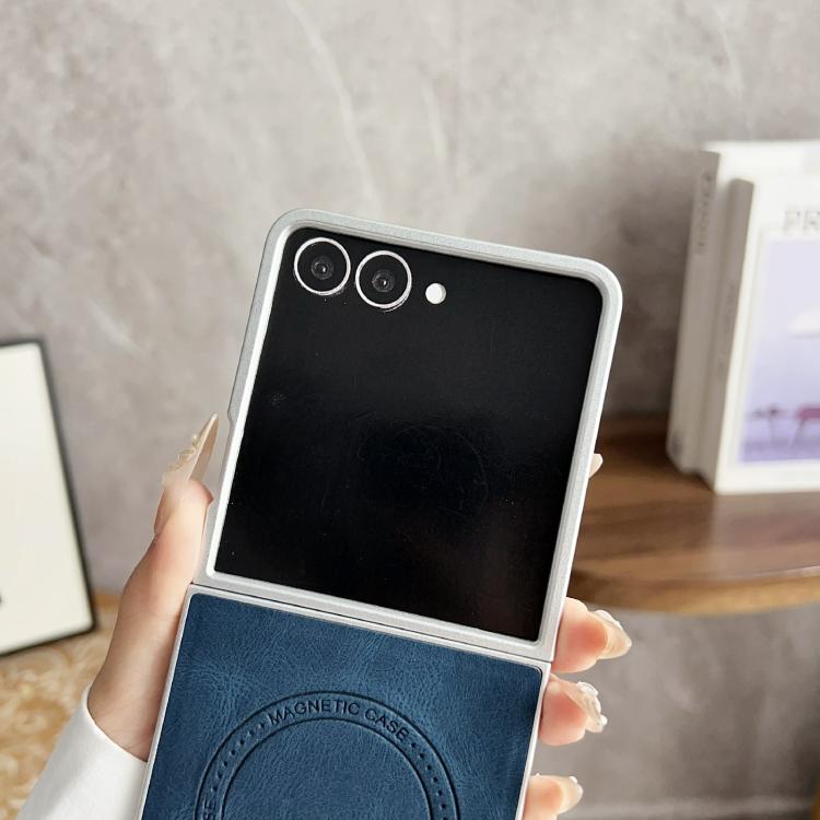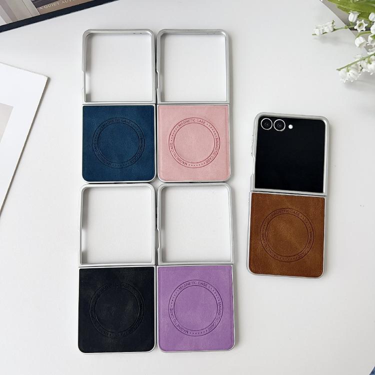 For Samsung Galaxy Z Flip7 5G Skin Feel Leather Texture MagSafe Pearlescent Paint Shockproof Phone Case(Brown)