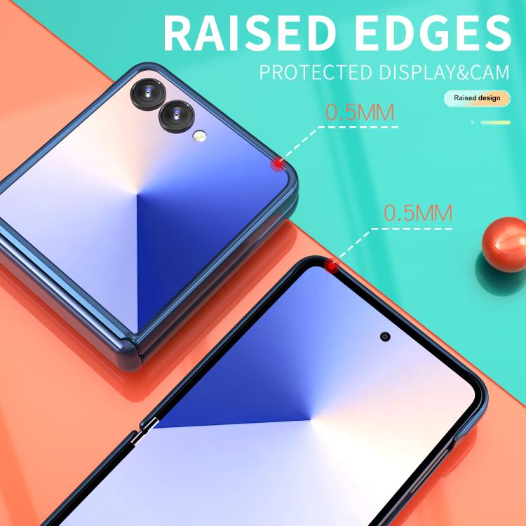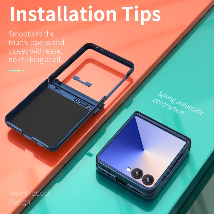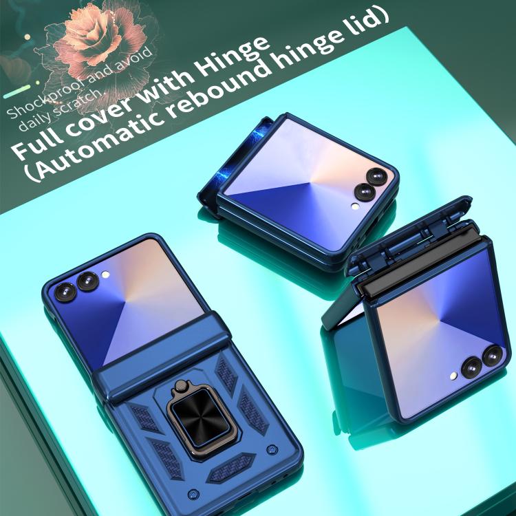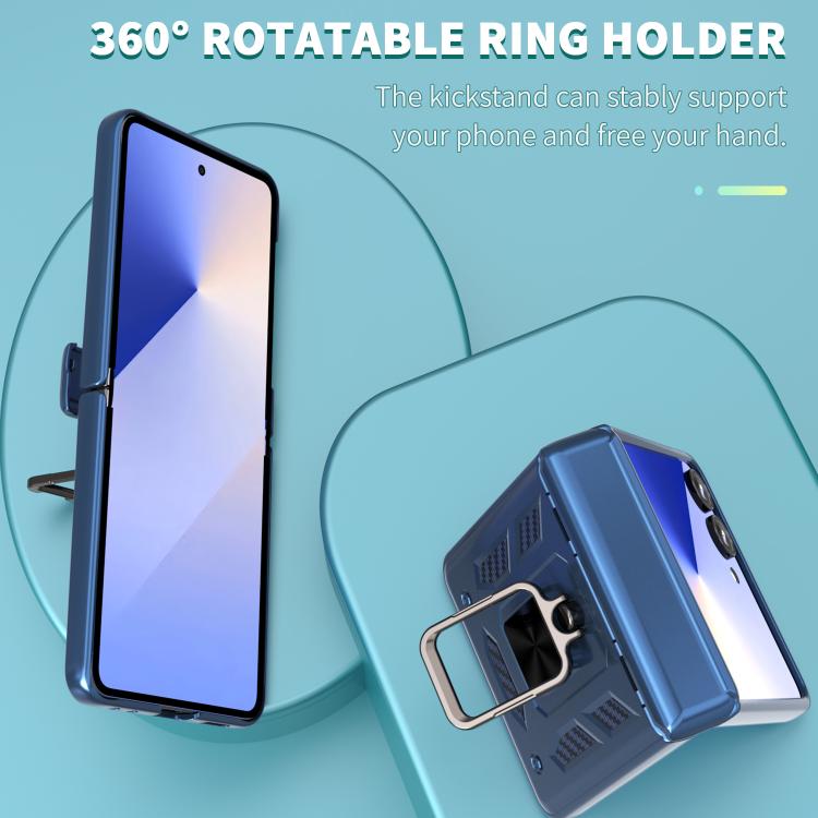 For Samsung Galaxy Z Flip7 5G Sliding Window Hinge Phone Case with Ring Stand(Blue)