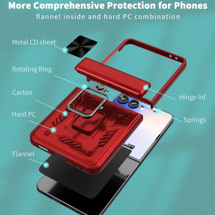 For Samsung Galaxy Z Flip7 5G Sliding Window Hinge Phone Case with Ring Stand(Red)