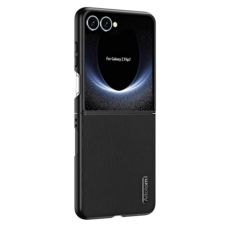 For Samsung Galaxy Z Flip7 5G Tree Bark Leather Shockproof Phone Case(黑色)