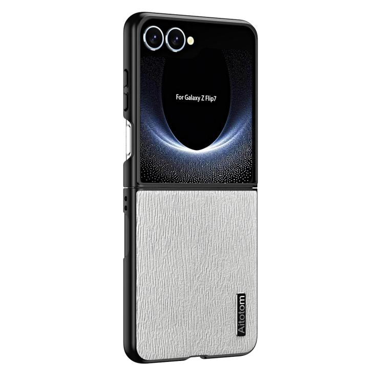 For Samsung Galaxy Z Flip7 5G Tree Bark Leather Shockproof Phone Case(White)
