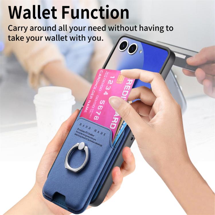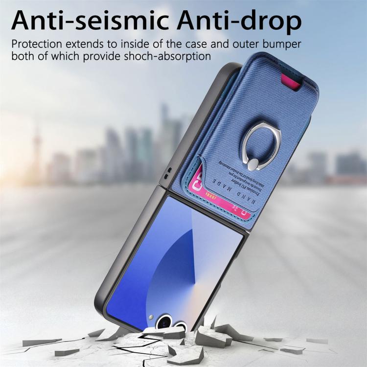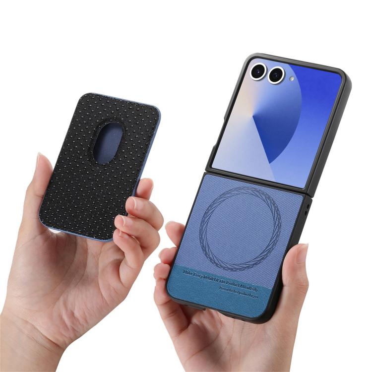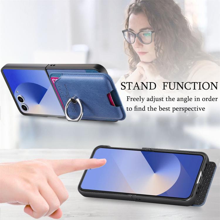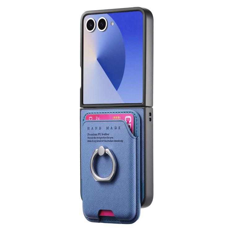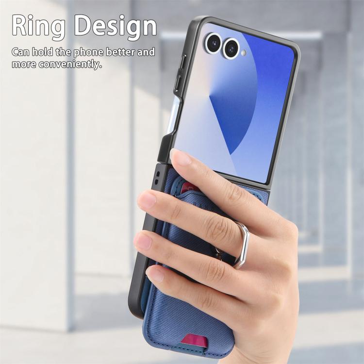 For Samsung Galaxy Z Flip7 5G Twill Fabric Card Bag Ring Magnetic Back Phone Case(Blue)