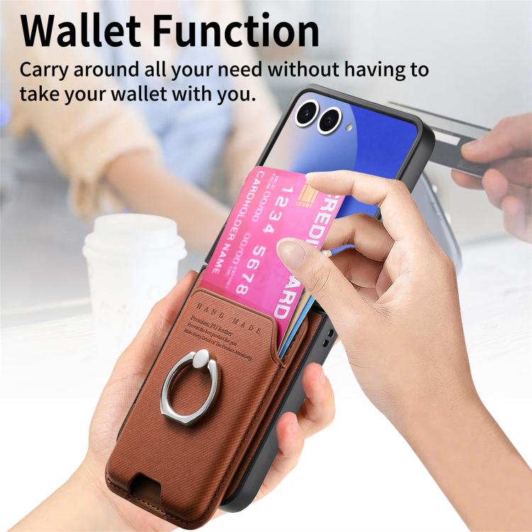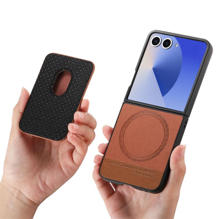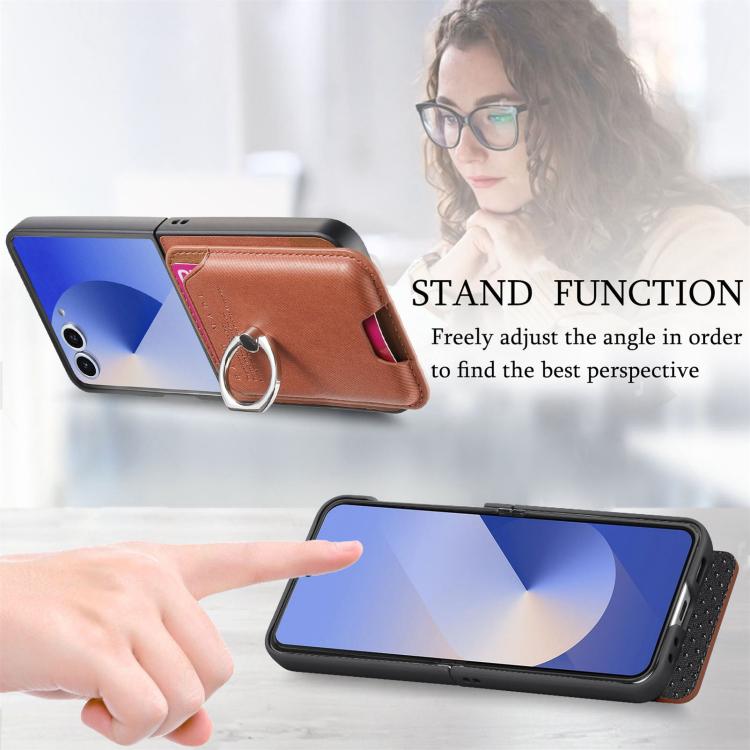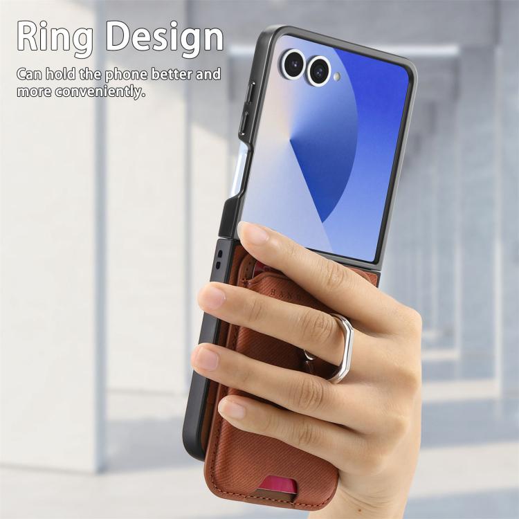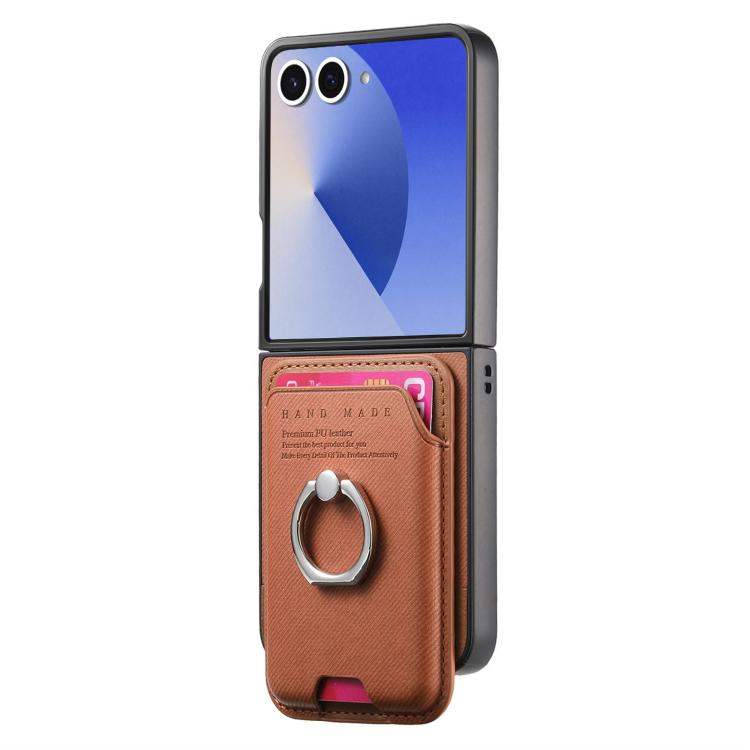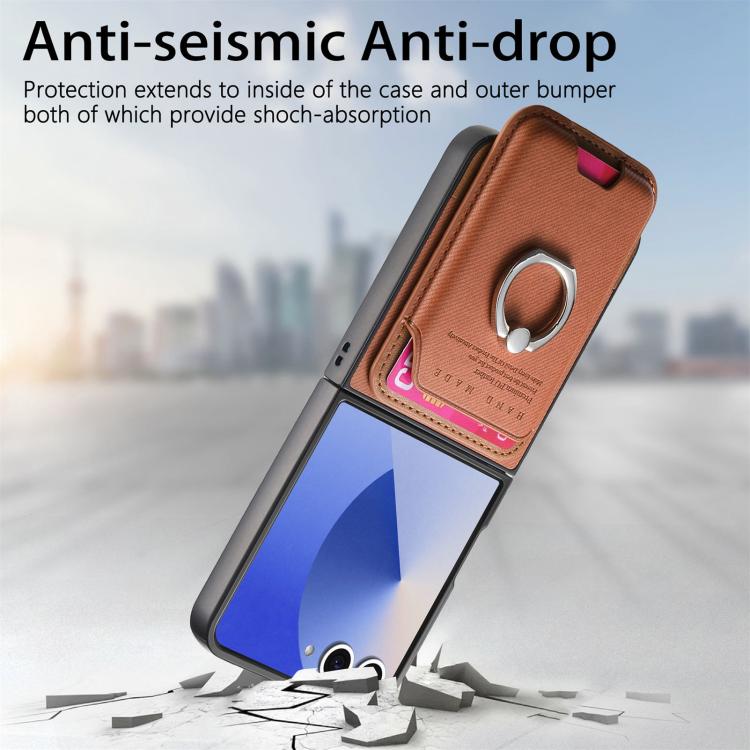 For Samsung Galaxy Z Flip7 5G Twill Fabric Card Bag Ring Magnetic Back Phone Case(Brown)