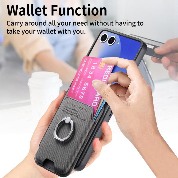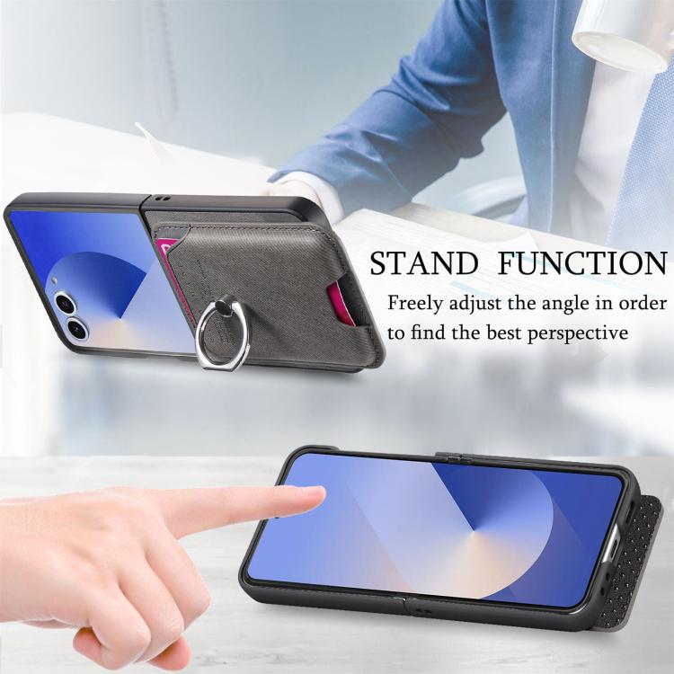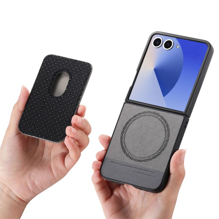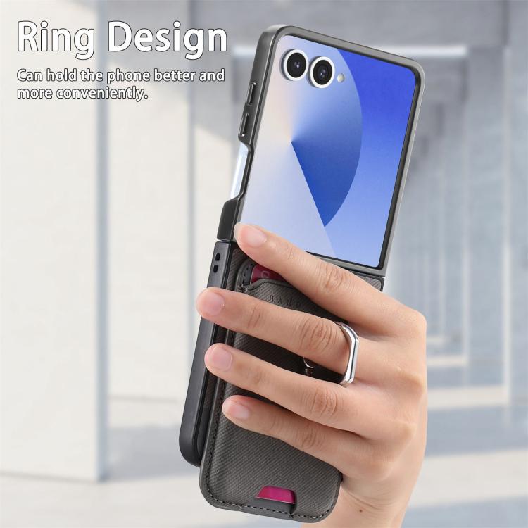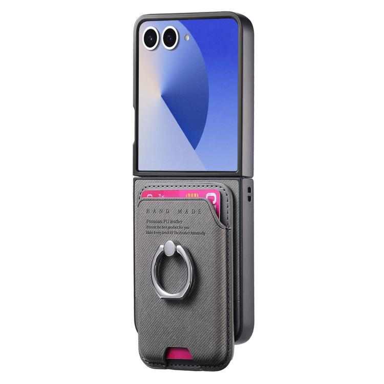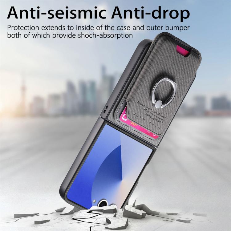 For Samsung Galaxy Z Flip7 5G Twill Fabric Card Bag Ring Magnetic Back Phone Case(Gray)