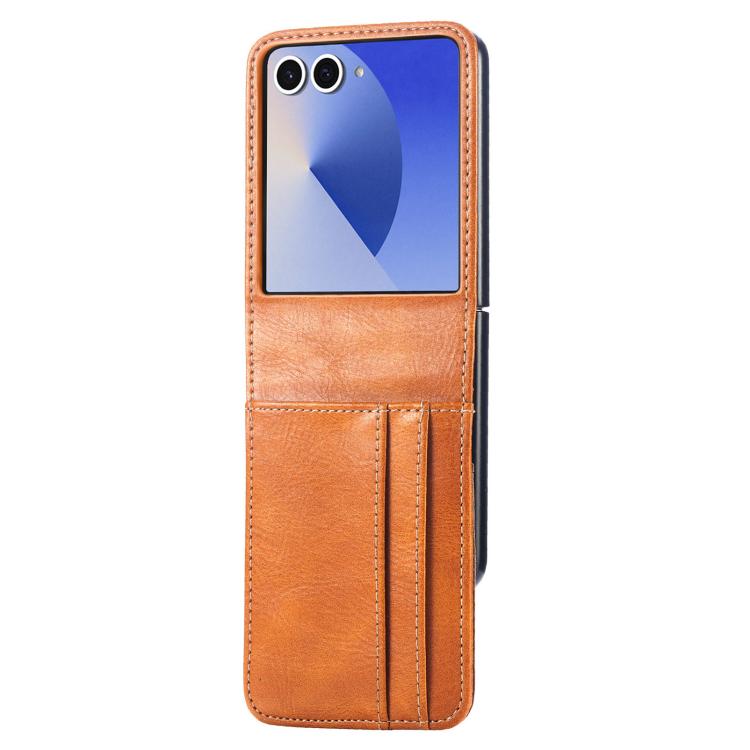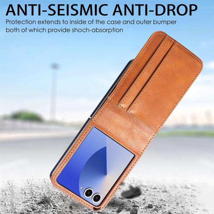For Samsung Galaxy Z Flip7 5G Vertical Flip Card Slot Leather Phone Case(Brown)