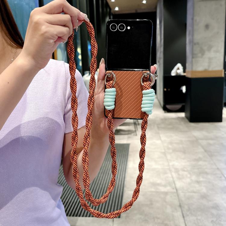 For Samsung Galaxy Z Flip7 5G Woven Texture Phone Case With Colorful Lanyard(Brown)