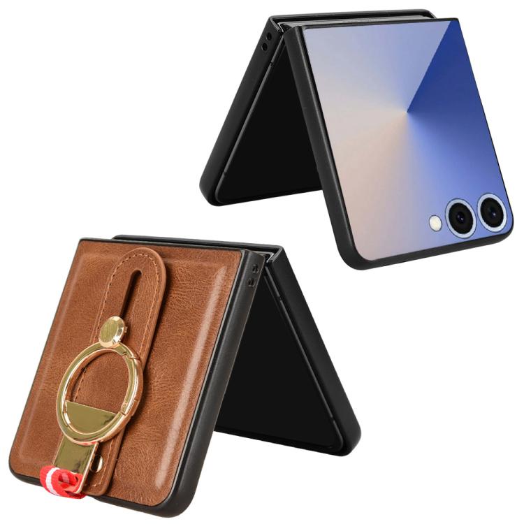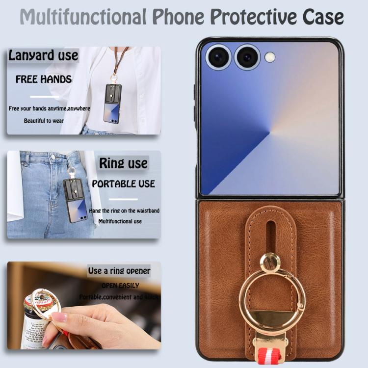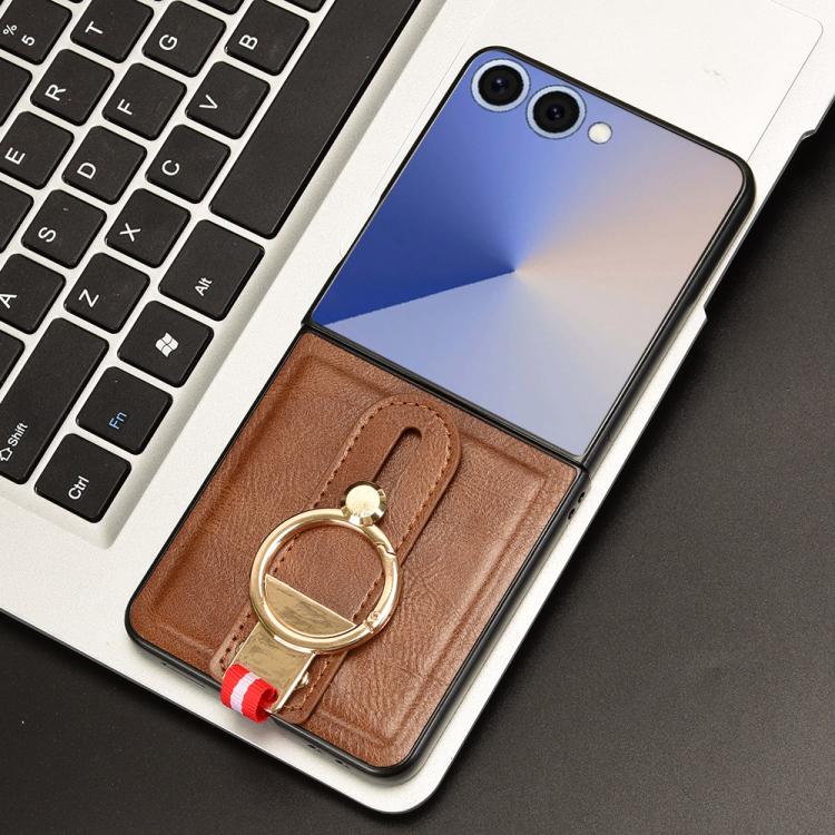 For Samsung Galaxy Z Flip7 5G Wristband Leather Back Phone Case(Brown)
