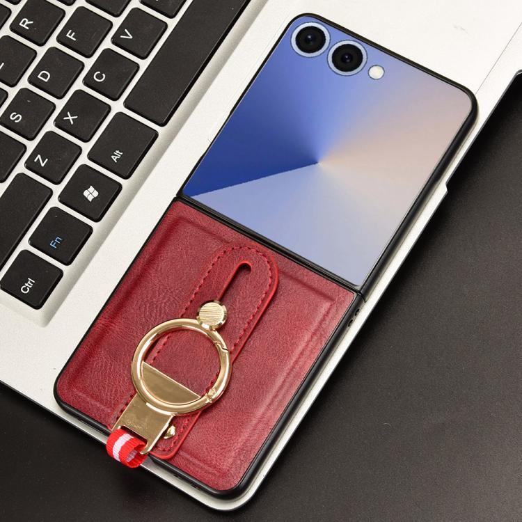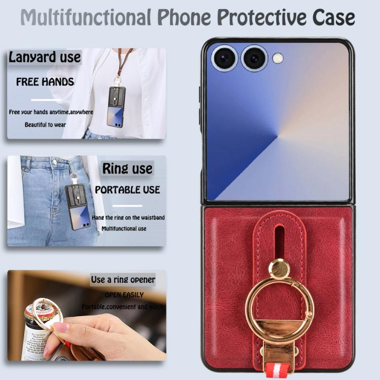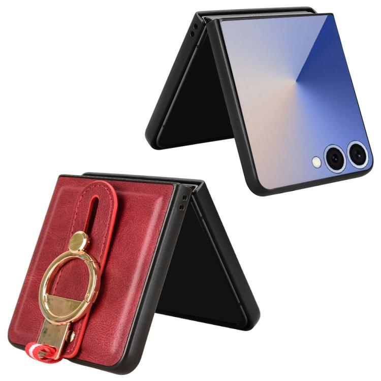 For Samsung Galaxy Z Flip7 5G Wristband Leather Back Phone Case(Red)