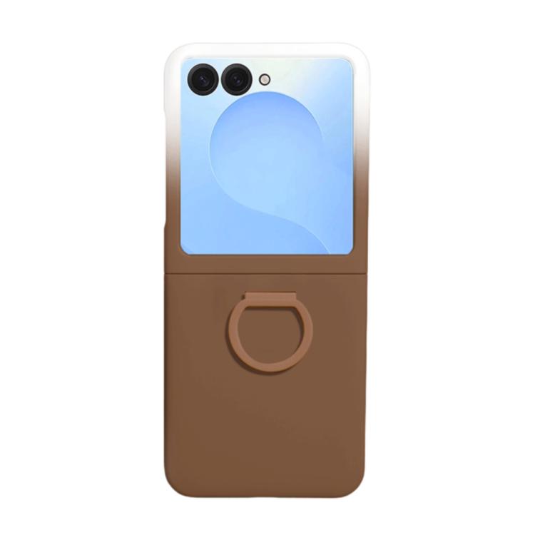 For Samsung Galaxy Z Flip7 FE / 6 / 5 5G Large Window Ring Holder Skin Feel PC Phone Case(Gradient Brown)